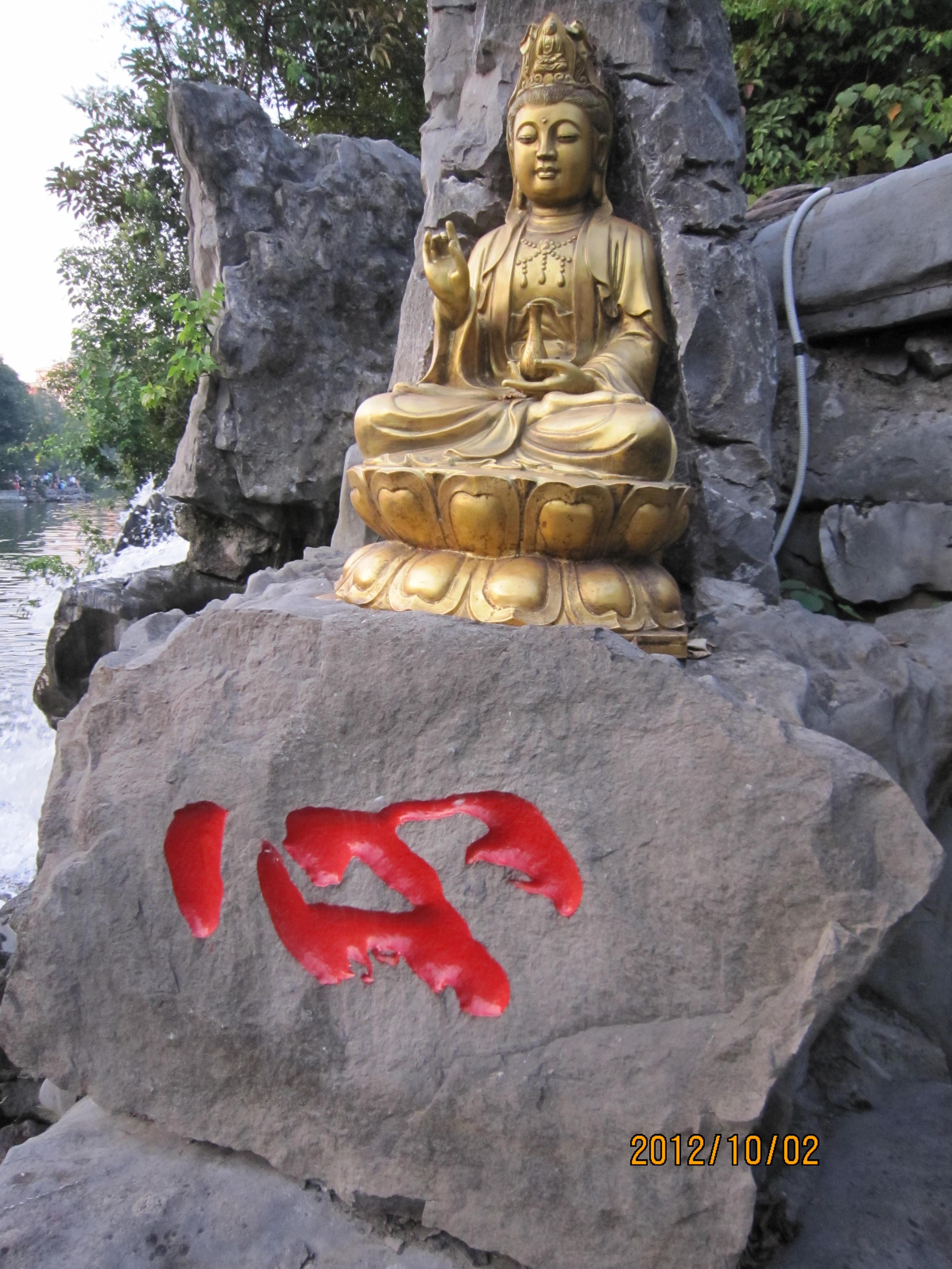 玄武湖的莲花观音雕像(2013年) 玄武湖的“石丈”(2013年)