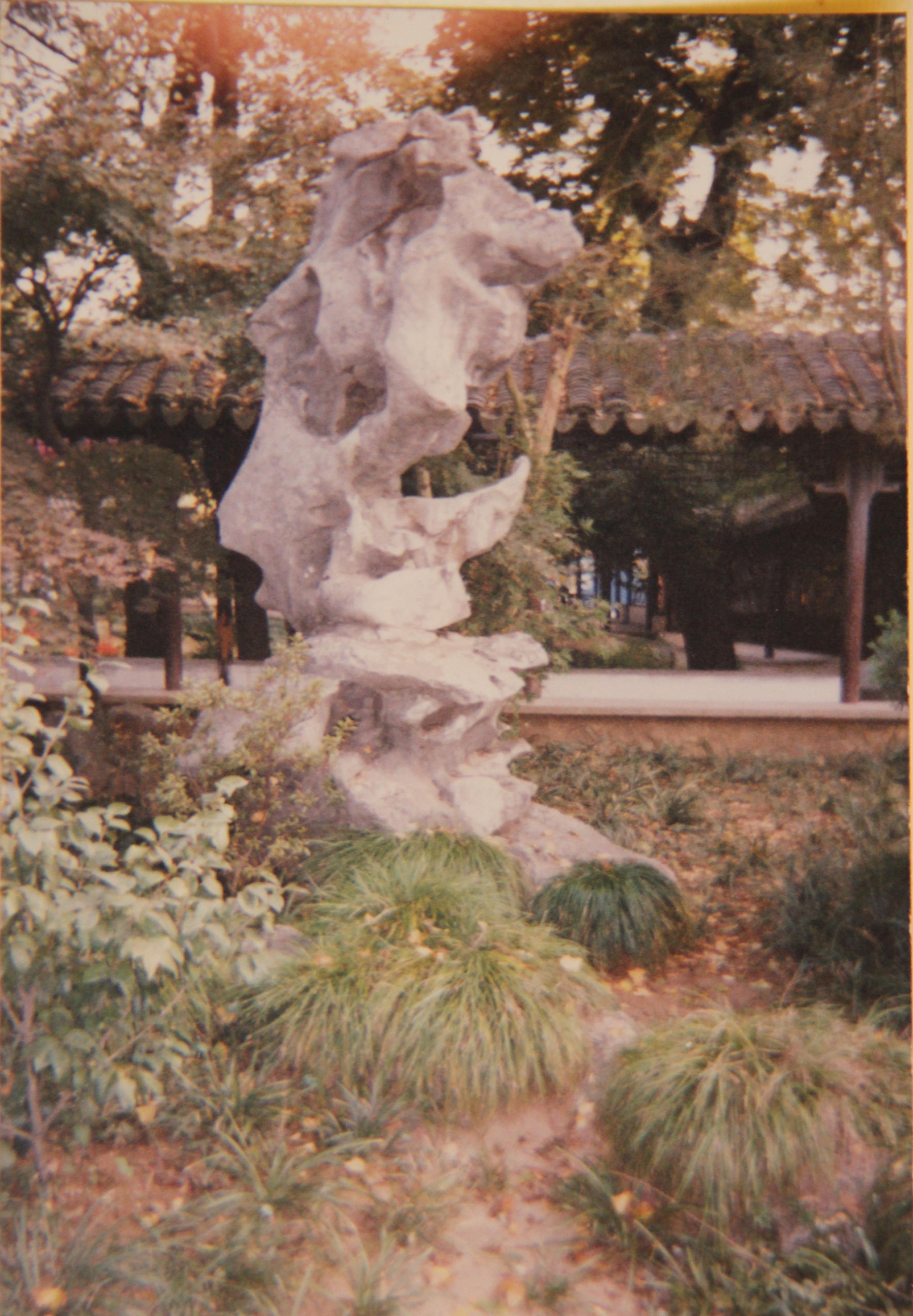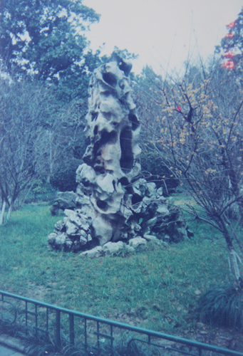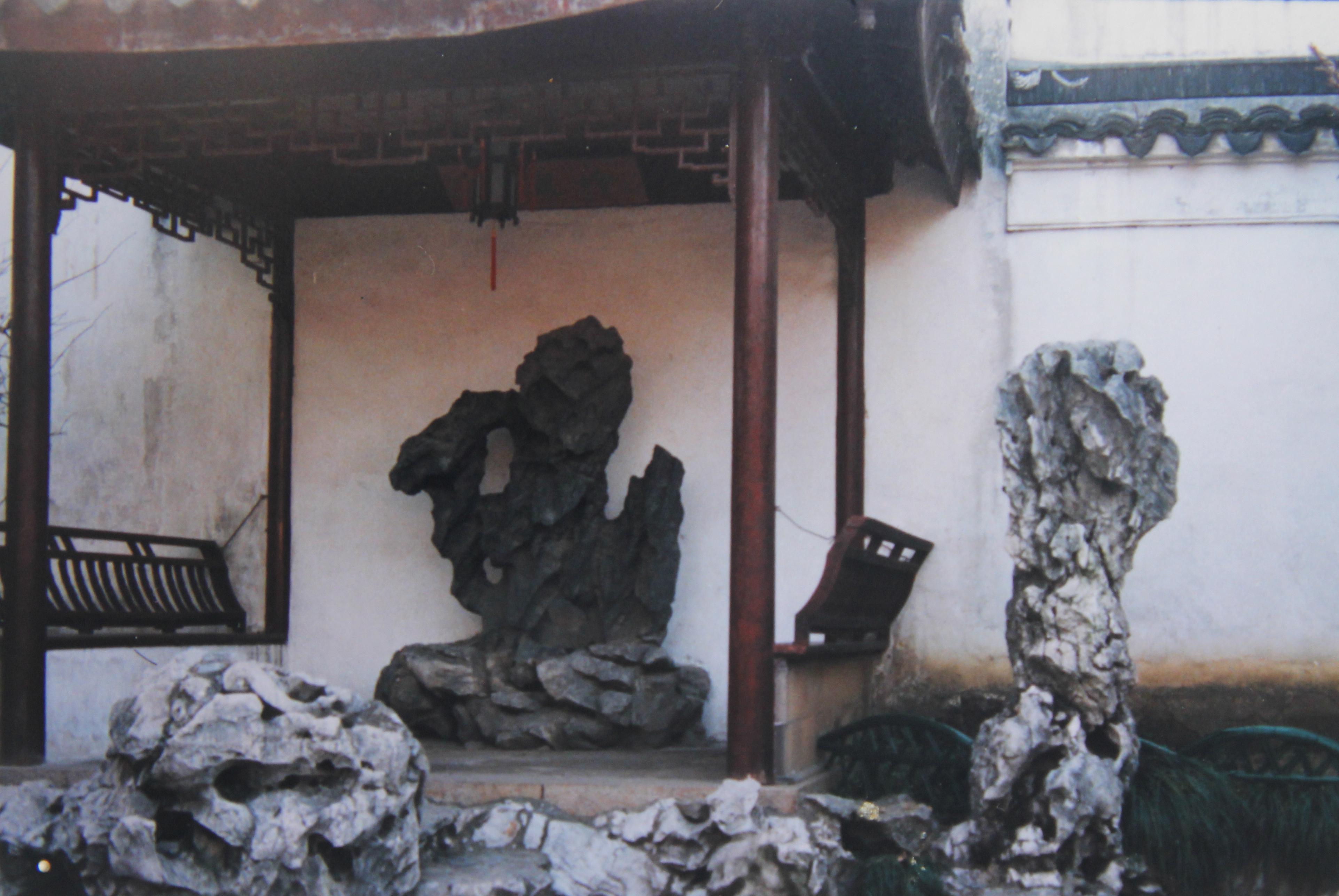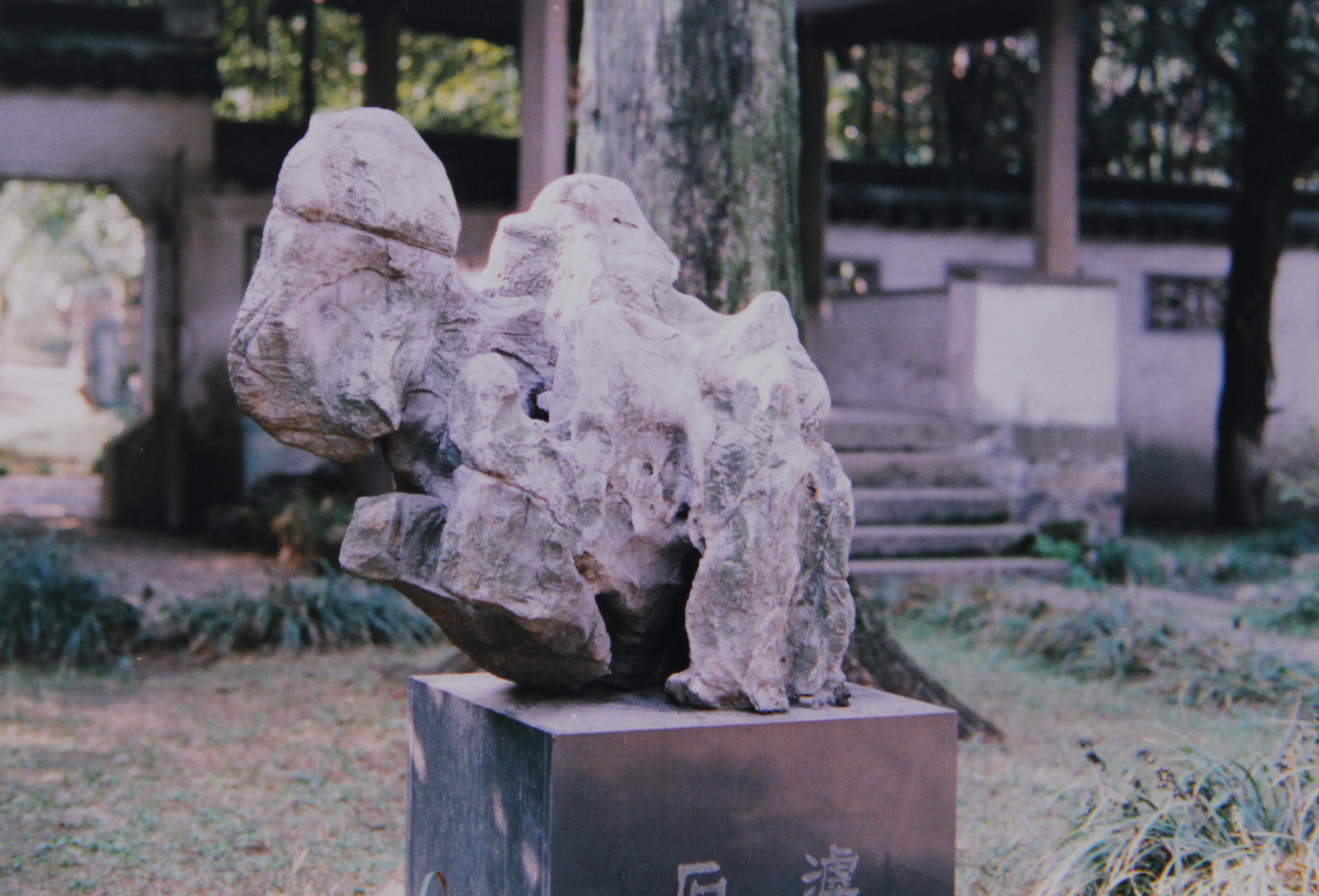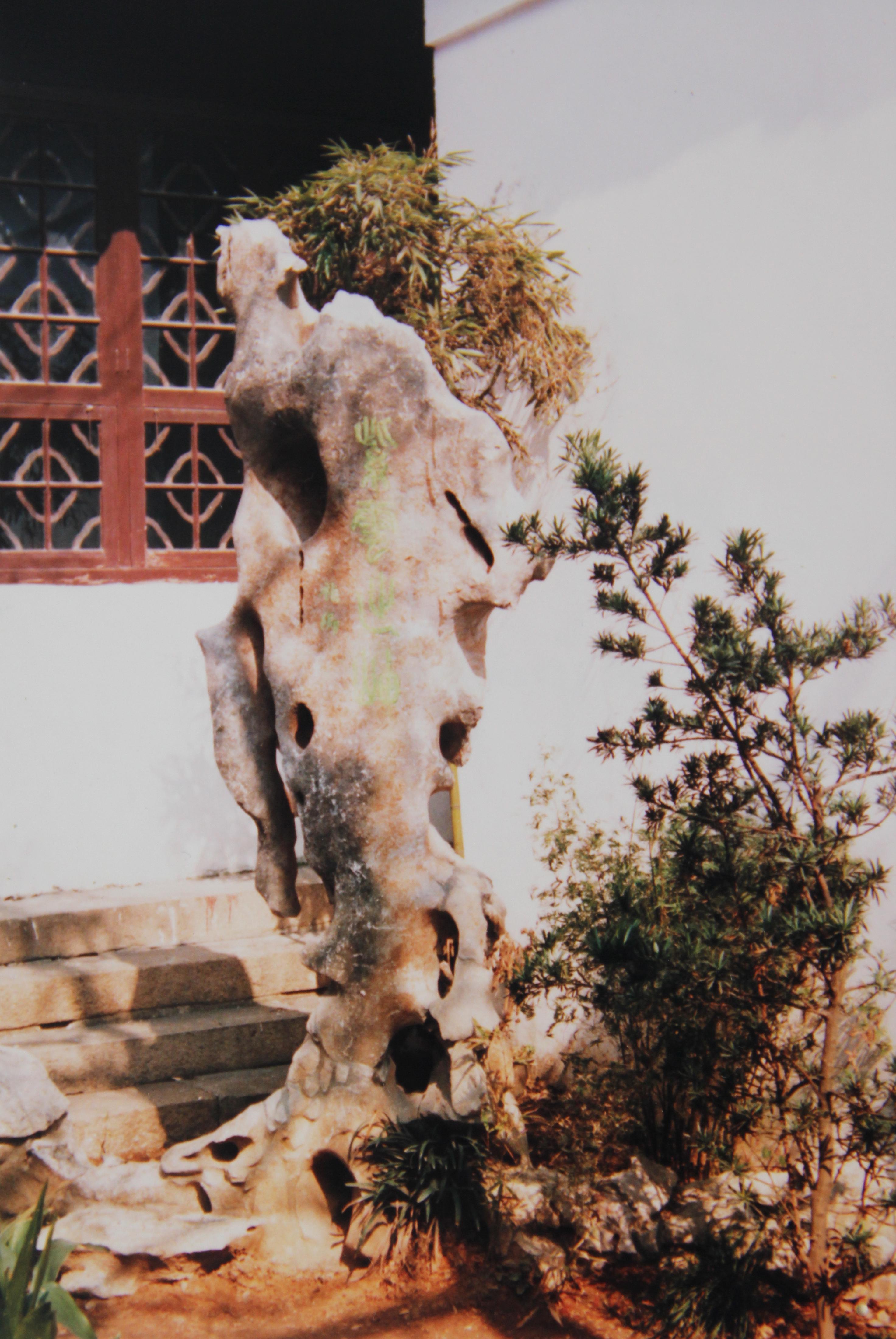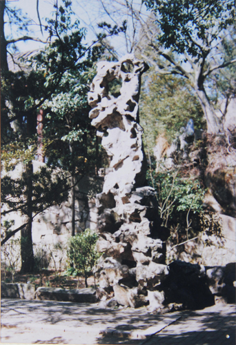 由于天气的缘故,当天没能拍摄照片,一直到第二年(2002年)深秋,我再次来到昆山,再次吃奥灶面、再次进亭林公园,才拍得了那二座昆石佳品的照片。虽然是用傻瓜相机拍摄的,也总算遂愿了。
