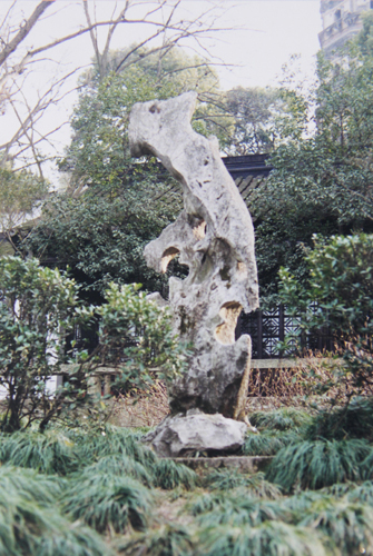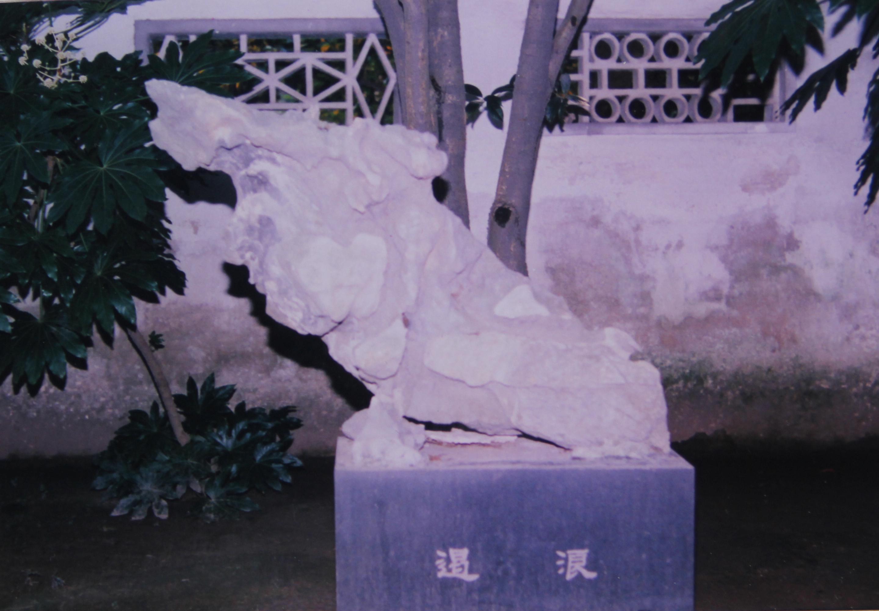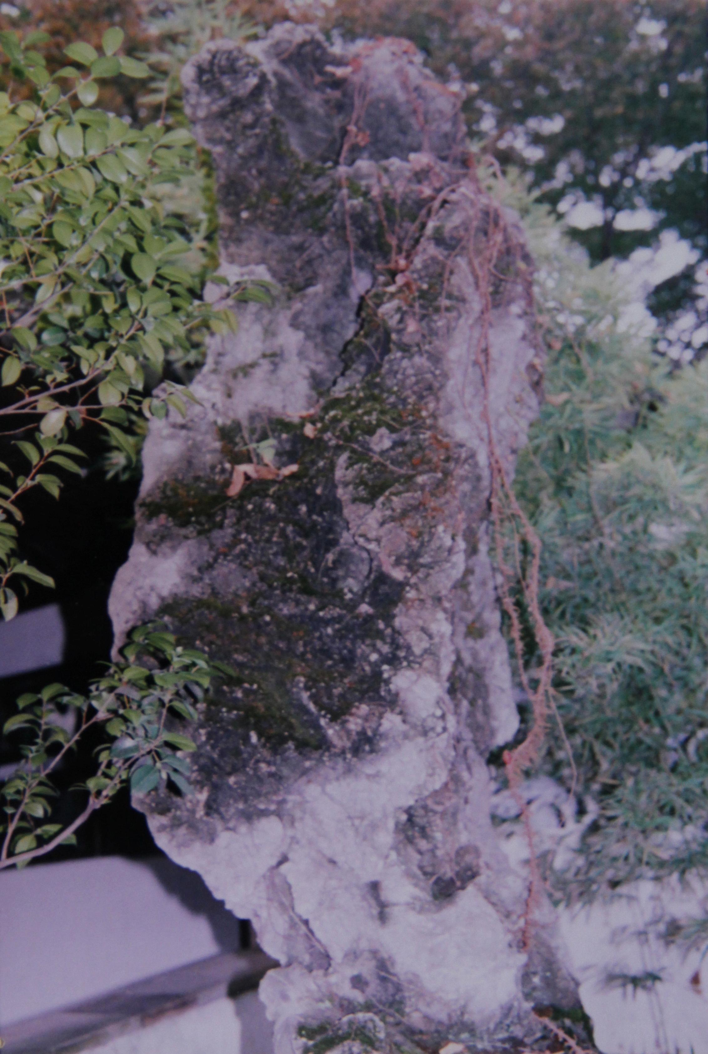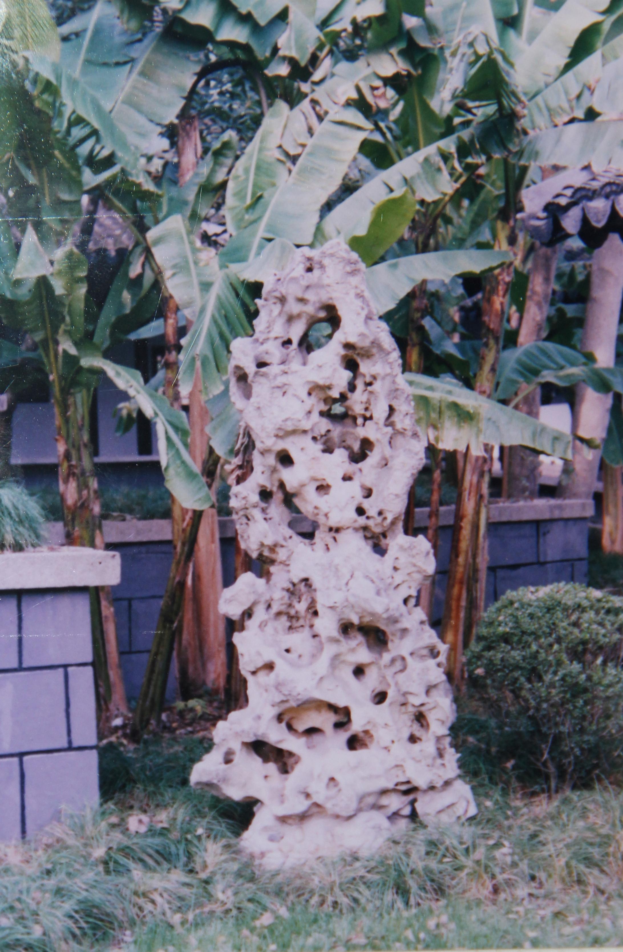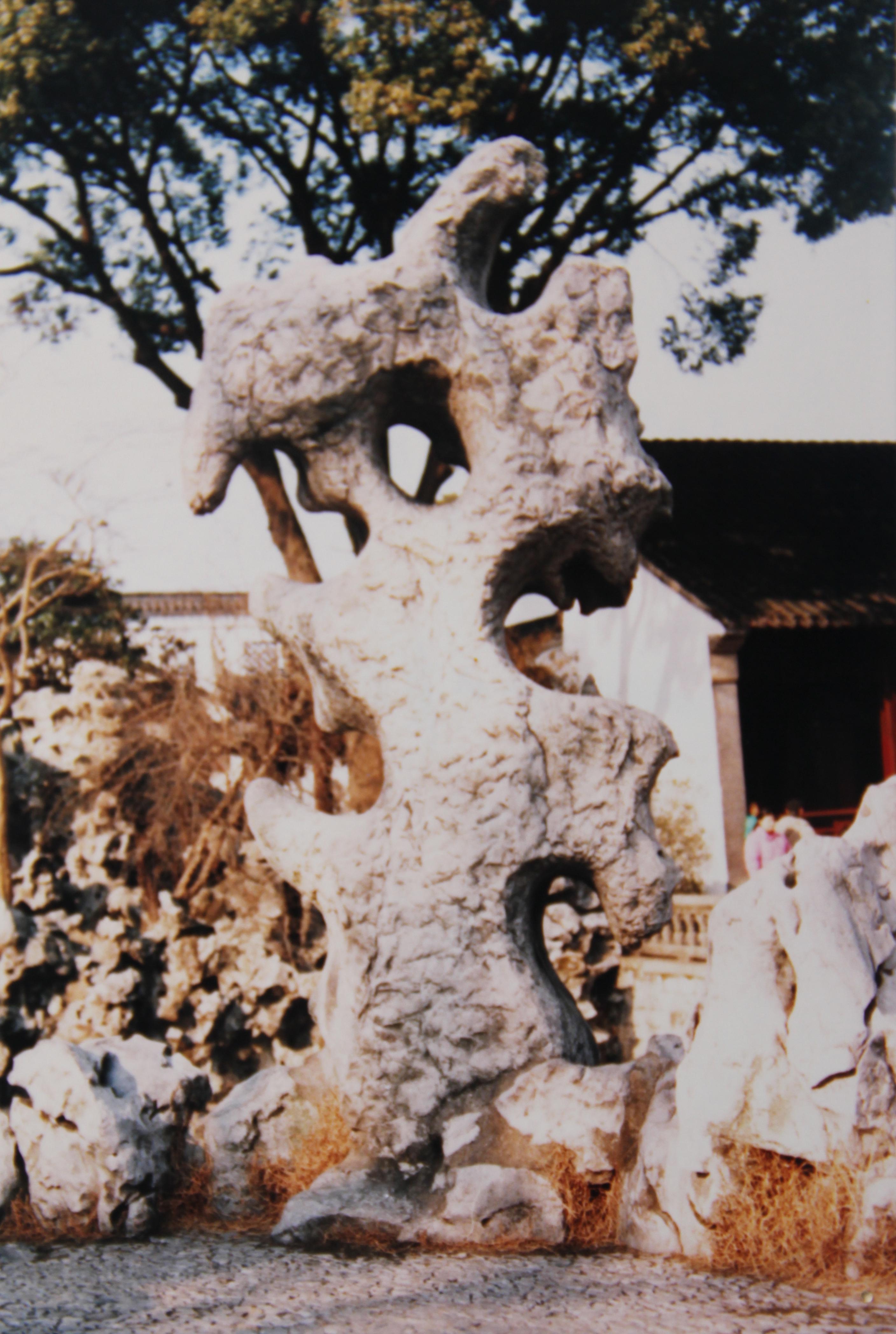 由于天气的缘故,当天没能拍摄照片,一直到第二年(2002年)深秋,我再次来到昆山,再次吃奥灶面、再次进亭林公园,才拍得了那二座昆石佳品的照片。虽然是用傻瓜相机拍摄的,也总算遂愿了。