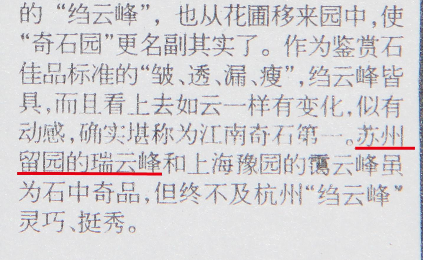 回到杭州后,我仍然很兴奋。找到了二座瑞云峰,仿佛发现了新大陆。事实上,那个时期,许多人并不知道有二座瑞云峰,就连有些介绍“江南三大名石”的文章也将瑞云峰写成了“苏州留园的瑞云峰”,更有甚者,连杭州1993年底建成的“江南名石苑”苑门外的简介里,也写错了,直到多年后才得以修改。