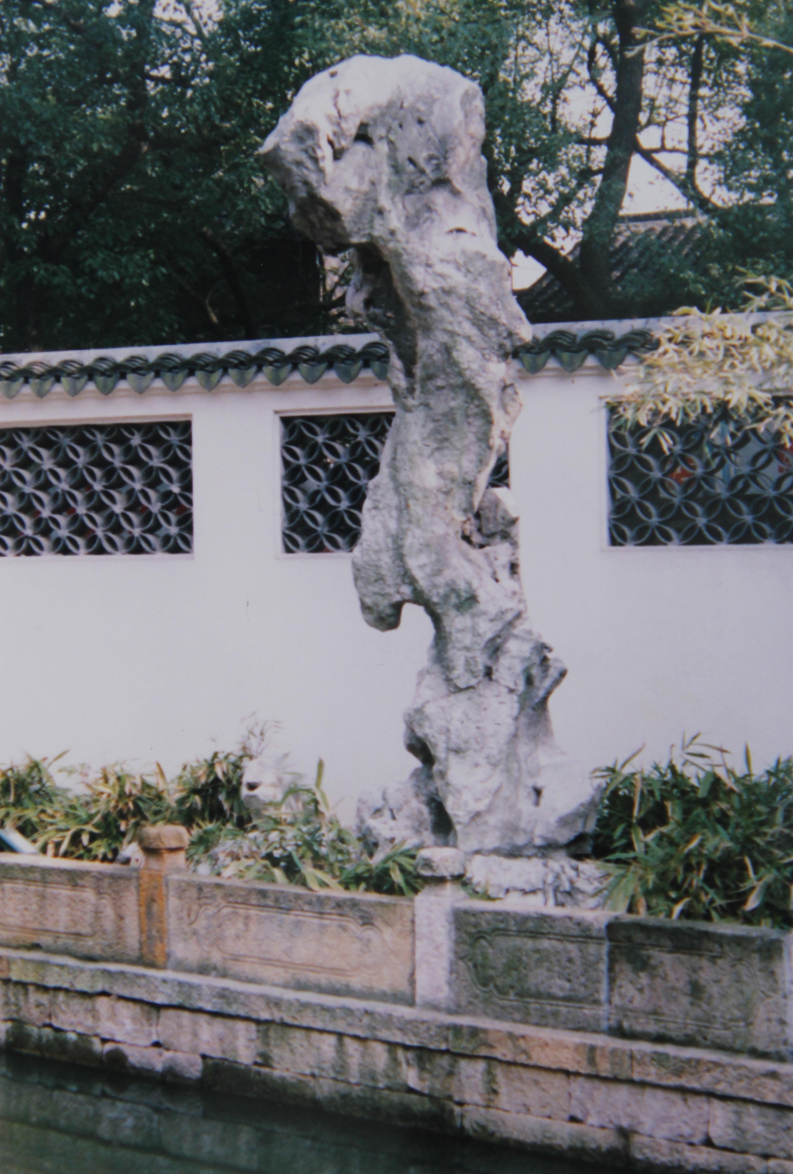 一开始我对寄畅园的奇峰异石并不很在意。正如前面《奇石情缘》一节所写的那样,真正开始对奇峰异石感兴趣,是在上世纪九十年代的初期。本世纪初,无锡的妻弟伟益给我寄来了一张剪报《太湖石韵》,文中介绍了无锡市区的一些著名的太湖石峰。那时手里已有一部傻瓜胶卷相机了,便开始在无锡有目标地对太湖石峰进行搜索。