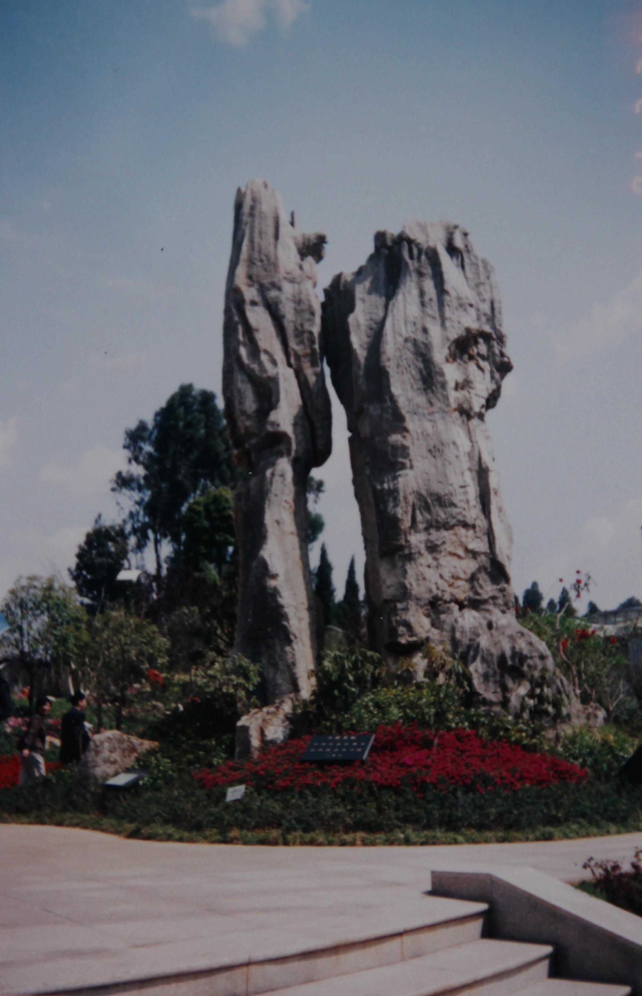 昆明世界园艺博览会 1999年在昆明举办了世界园艺博览会。早就想去参观,却一直等到2001年才有机会。化100元门票钱,进去游览了一整天。留下印象最深的还是“中国馆”的奇峰异石,这里竖立着许多巨大的园林景观石。举办方还特意在每座石峰的下方标明了石名和类别,赋予了游客一种完美的文化艺术享受。
