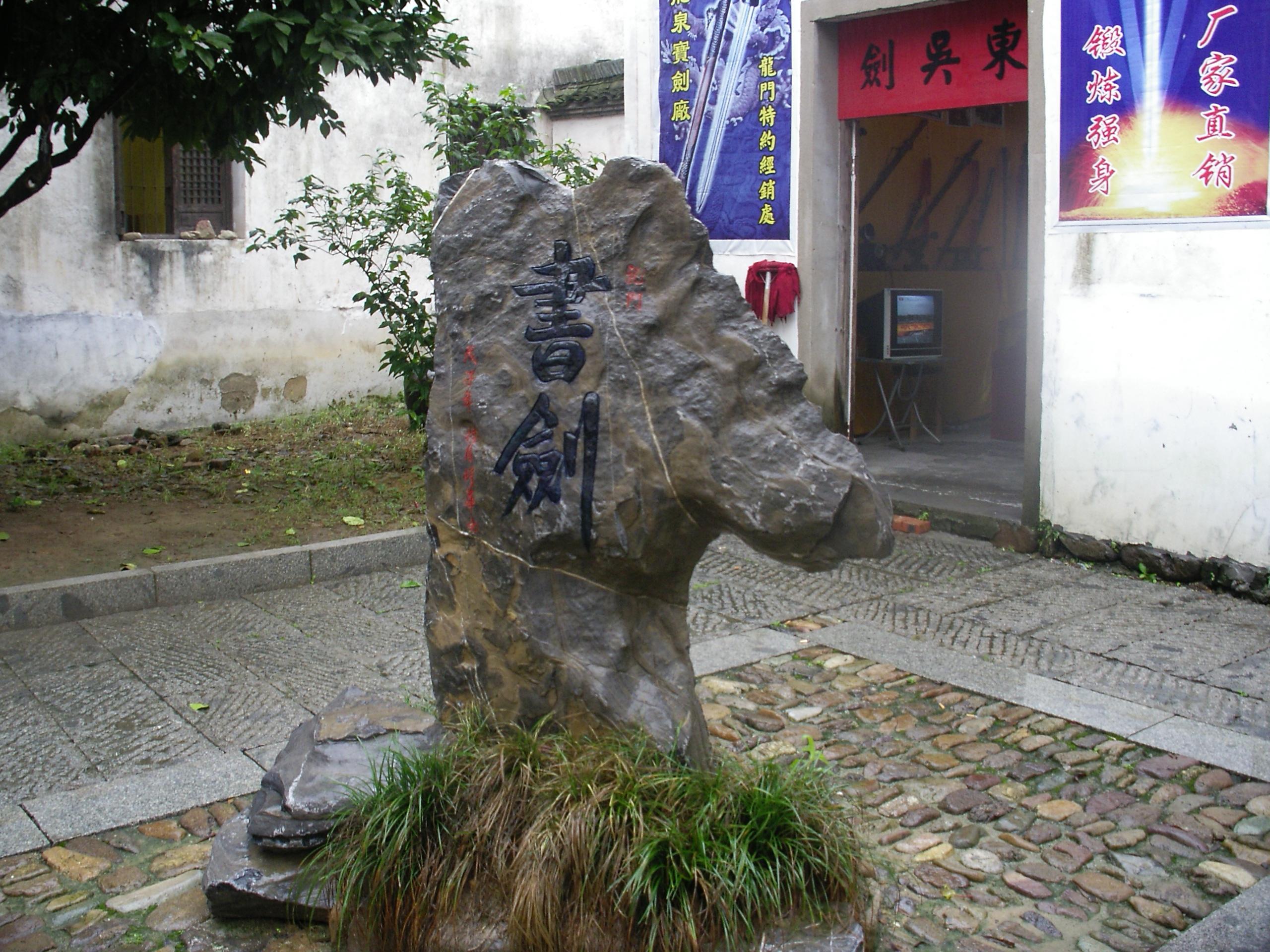 2009年初秋,秋雨沥沥,我携全家冒雨到富阳去旅游。孙权故里在富阳市龙门镇。门口竖立着一块巨大的石碑,上面篆刻着二行金字: 神奇龙门古镇 孙权故里迷阵