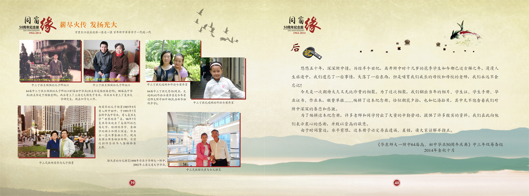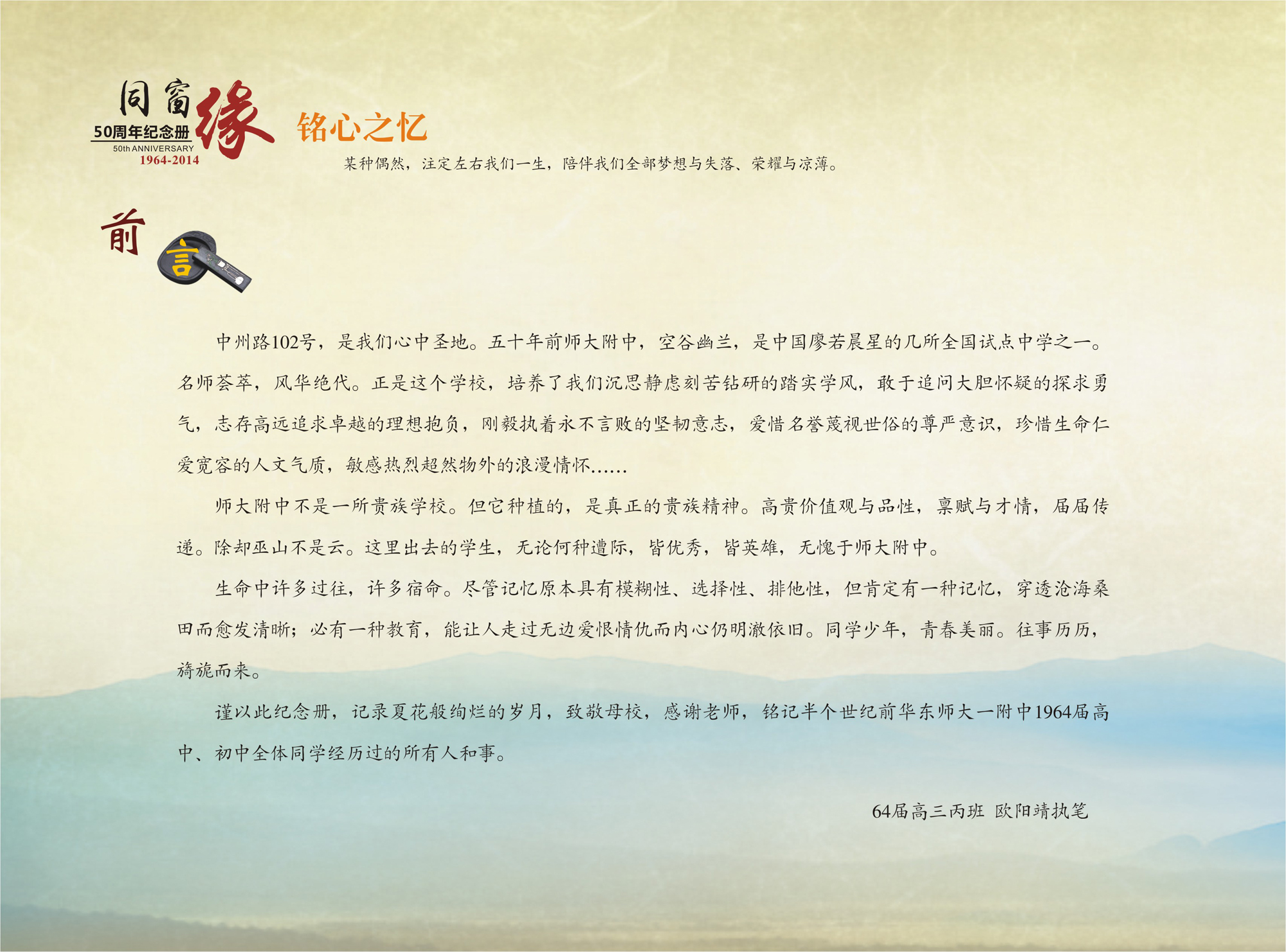 《华东师范大学第一附属中学64届学生毕业50年纪念册》(初中)