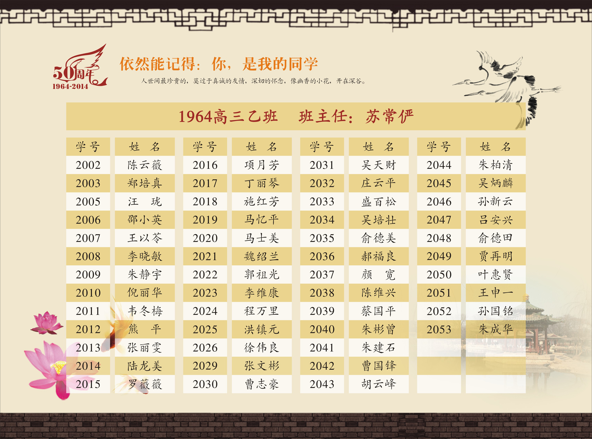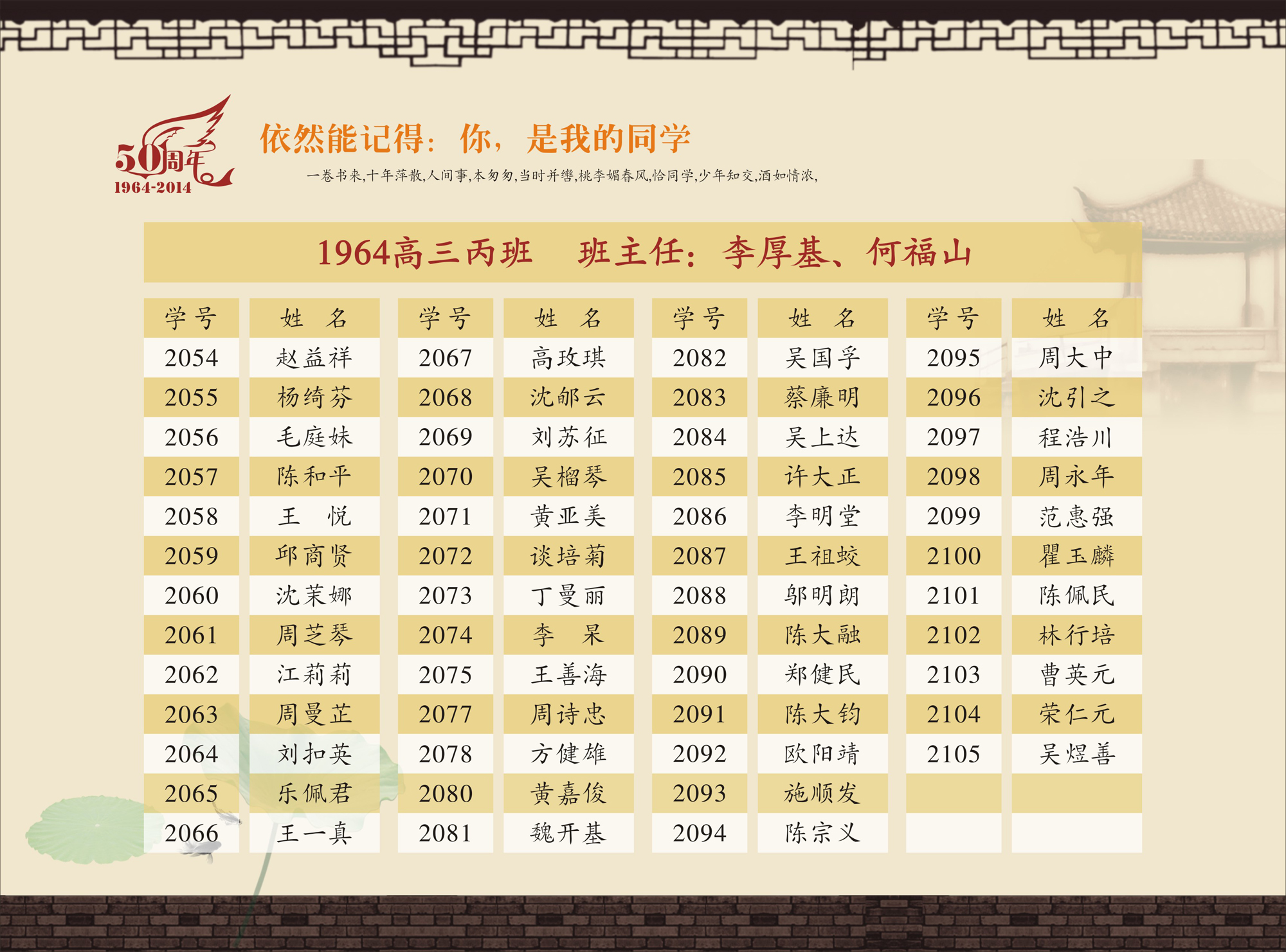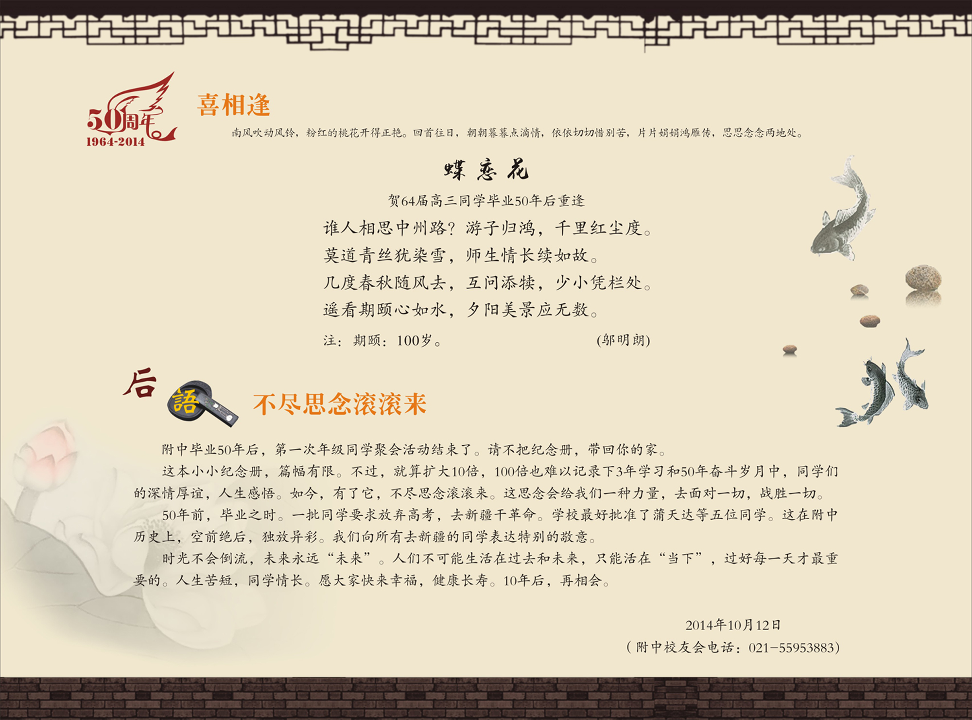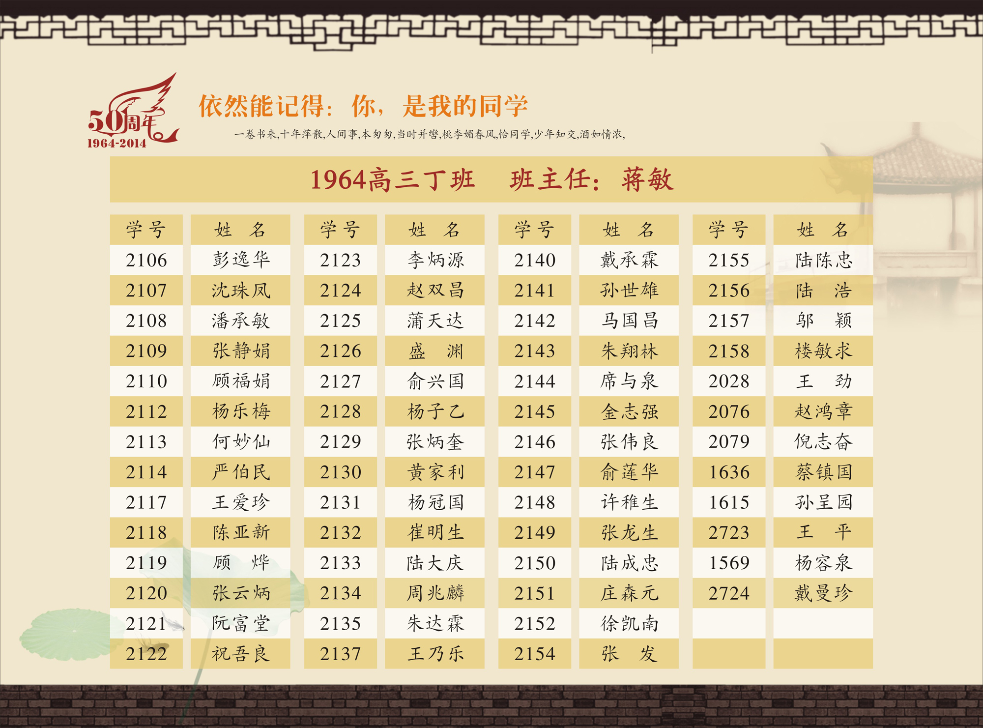 《华东师范大学第一附属中学64届学生毕业50年纪念册》(高中)