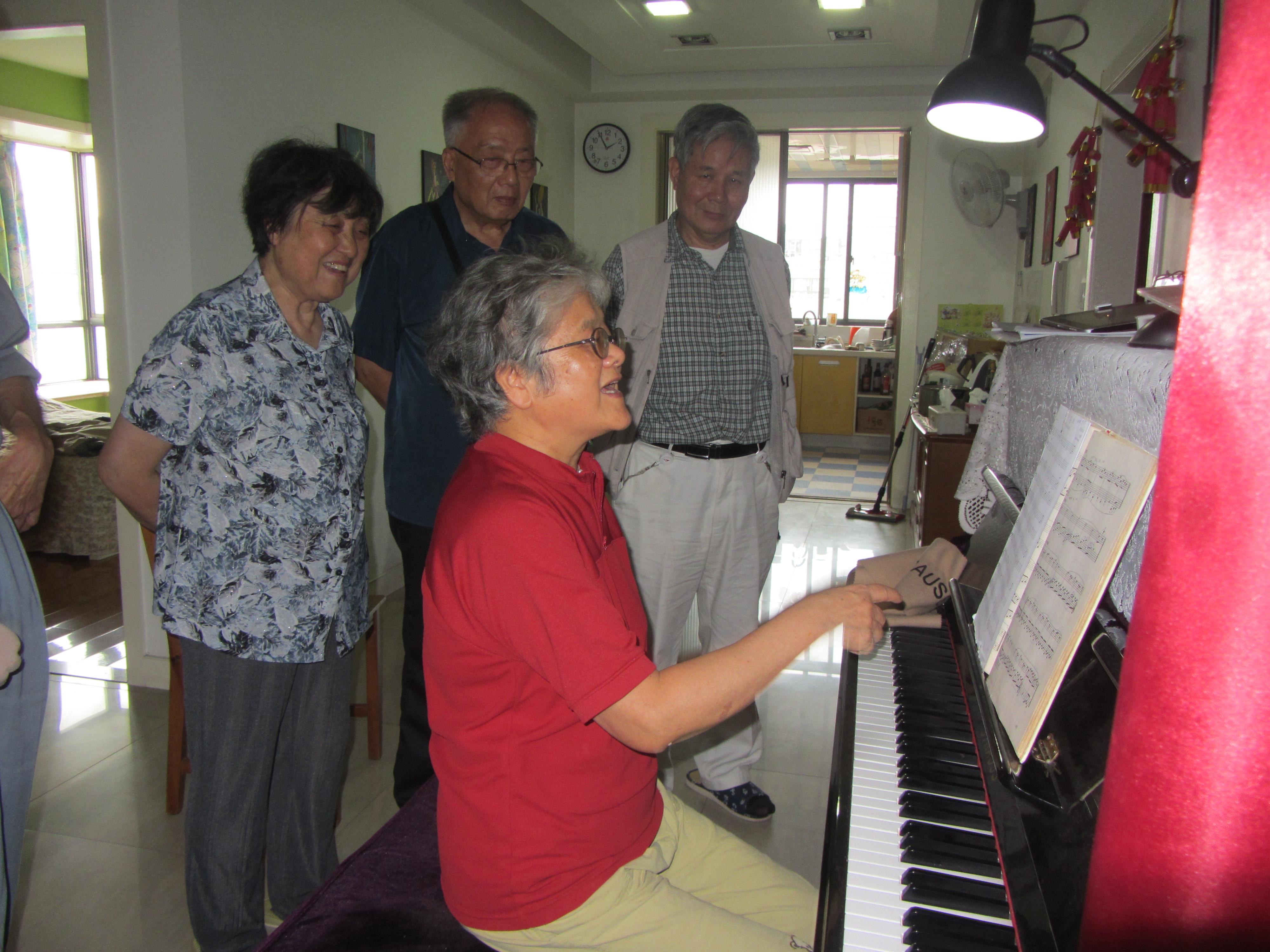 学习钢琴是我儿时的美梦,我记得我最羡慕的是同一个弄堂里的好朋友、我初中的同班同学汤璇罗家里有一台钢琴,她们几个姐妹都会弹钢琴,我经常去她们家玩,听她们弹钢琴。从她们家出来了,我还会站在她们家门外面听一会。我喜欢那钢琴声。我那时候就经常梦想我以后也要买钢琴,也要学习弹钢琴,我儿时的这个愿望经过半个多世纪,一直到2003年实现了,我第二次正式退休了,有时间了,住房条件也改善了,我买了一架钢琴,我上老年大学学习弹钢琴。当时,沈老师教的五线谱我差不多已忘记了,然而从中央C开始一条线,一条线的数,高音部和低音部慢慢地区分,慢慢地认识。虽然,我年纪大了,深感自己接受能力和反应能力都差了,我在老年大学钢琴班里年龄也是偏大的,但我发现老师讲的乐理知识和概念我还是能比较快地理解并接受,这是什么原因呢?我感恩中学的音乐老师,虽然经过半个世纪,您教我的一些乐理知识我似乎都忘记光了,但是,基础还是在的,我从大脑深层调出来了。我还参加小区的合唱团,平时练习发音发声,学习唱歌,我们既唱优美悦耳的老歌,也学唱流行的欢快的新歌,有时候还接受演出任务和参加比赛,加班加点练习。因而退休生活也十分丰富多彩。