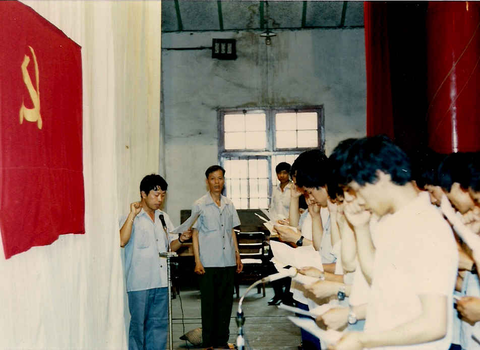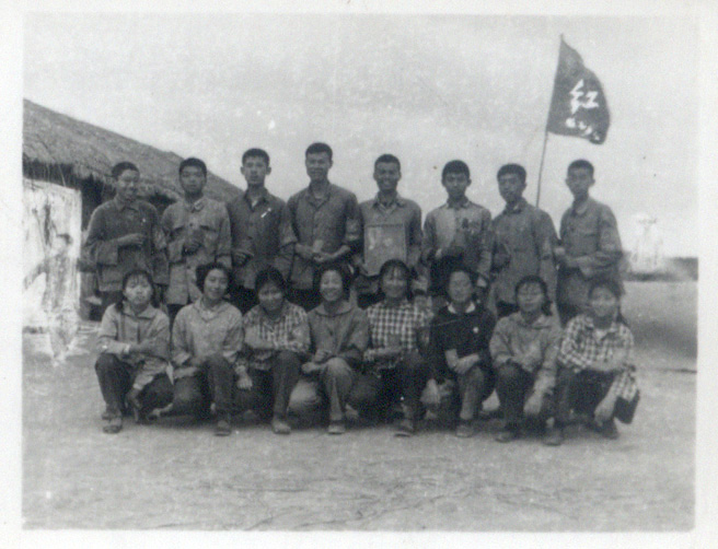在虞永红(后左一)等团员帮助下,我(后左二)也光荣地加入了共青团