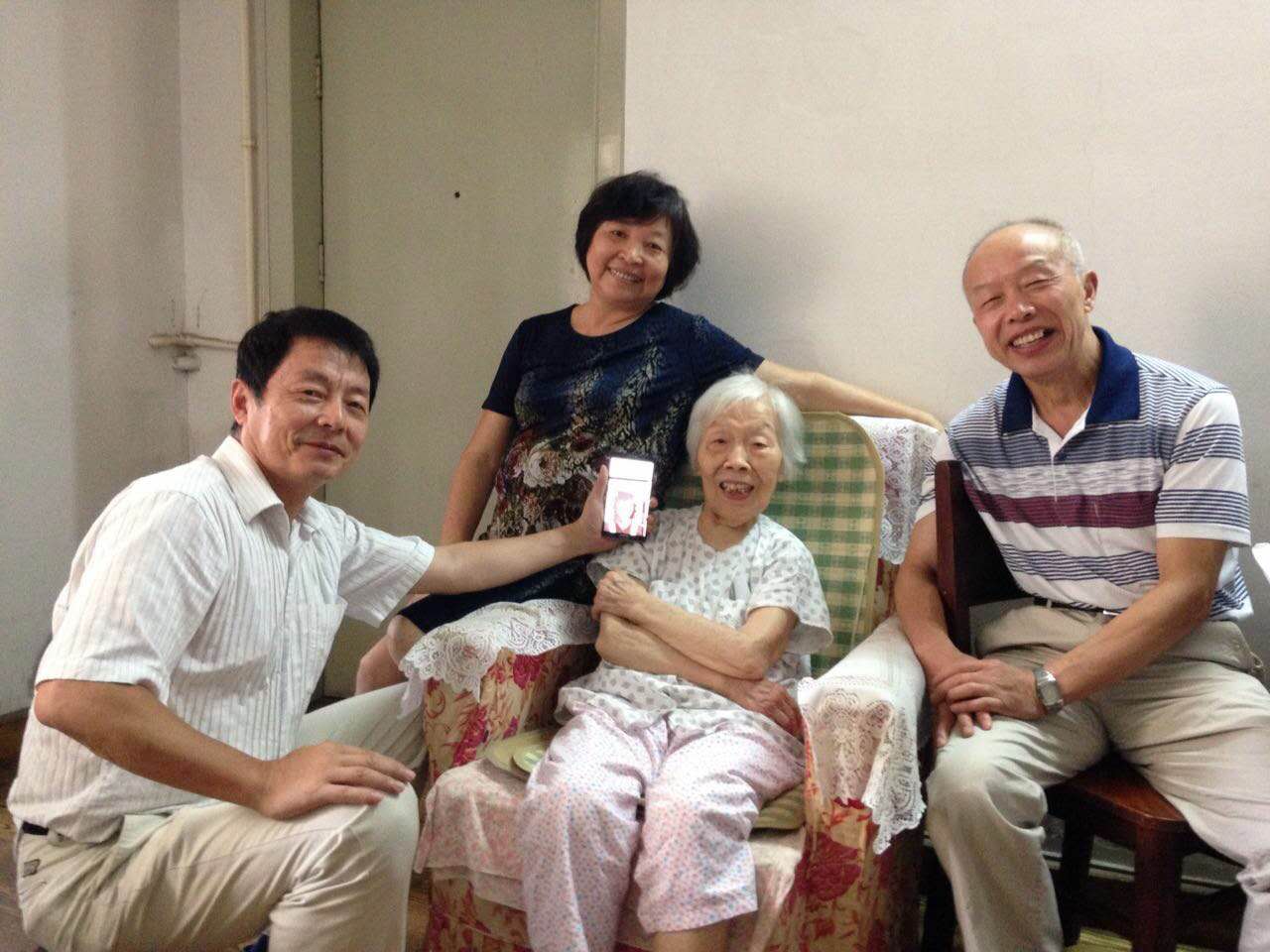 我(右一)和同学经常去探望敬爱的龙老师