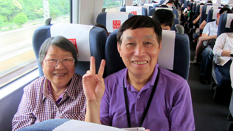我们从四面八方坐上头班地铁,赶到虹桥火车站,乘上早晨7:27由上海开往浙江德清的高铁G7395列车。车票是老班长陈昌道为大家在网上预订的。可惜他自己前不久扭伤了腰,无法成行。大家深感遗憾,也对他为筹备这次聚会不辞辛劳而表示由衷的感谢!