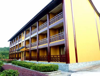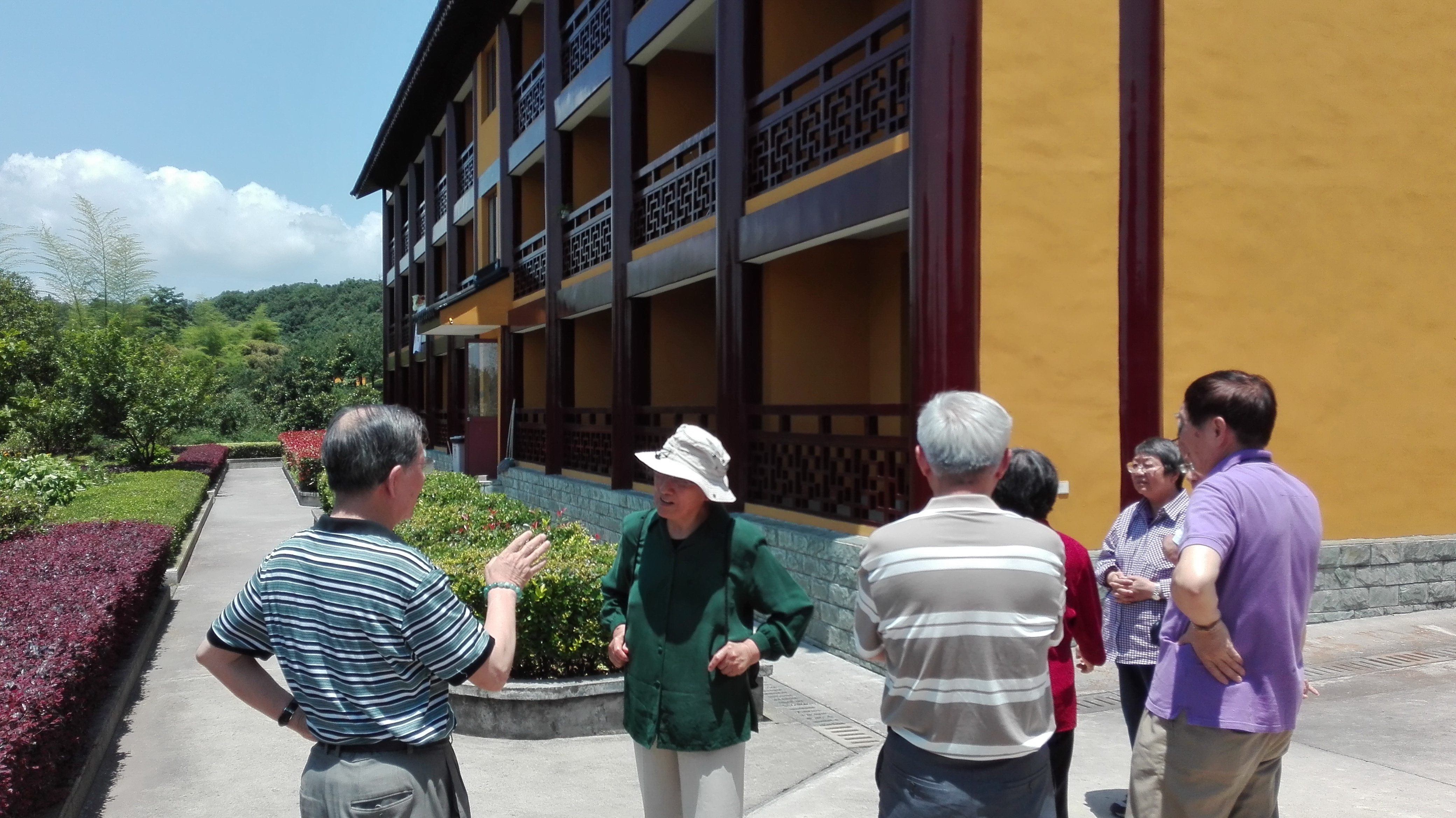 放下行李,安排好住宿以后,大家就跟着周晓光边走边参观他一手设计的园林式古建筑寺院——高峰禅寺。