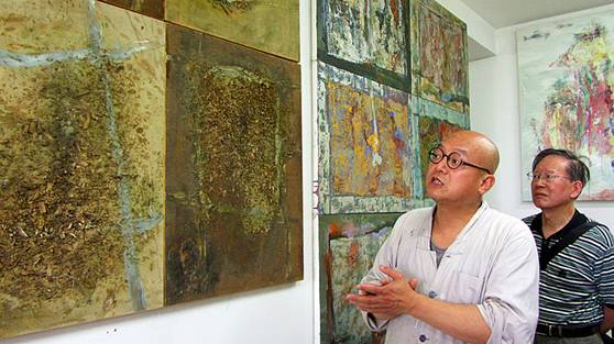大憨住持解释“井”字系列油画