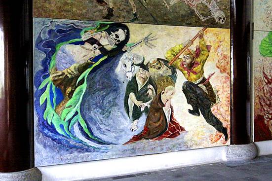 护法殿墙上挂着大憨住持画的孙悟空三打白骨精