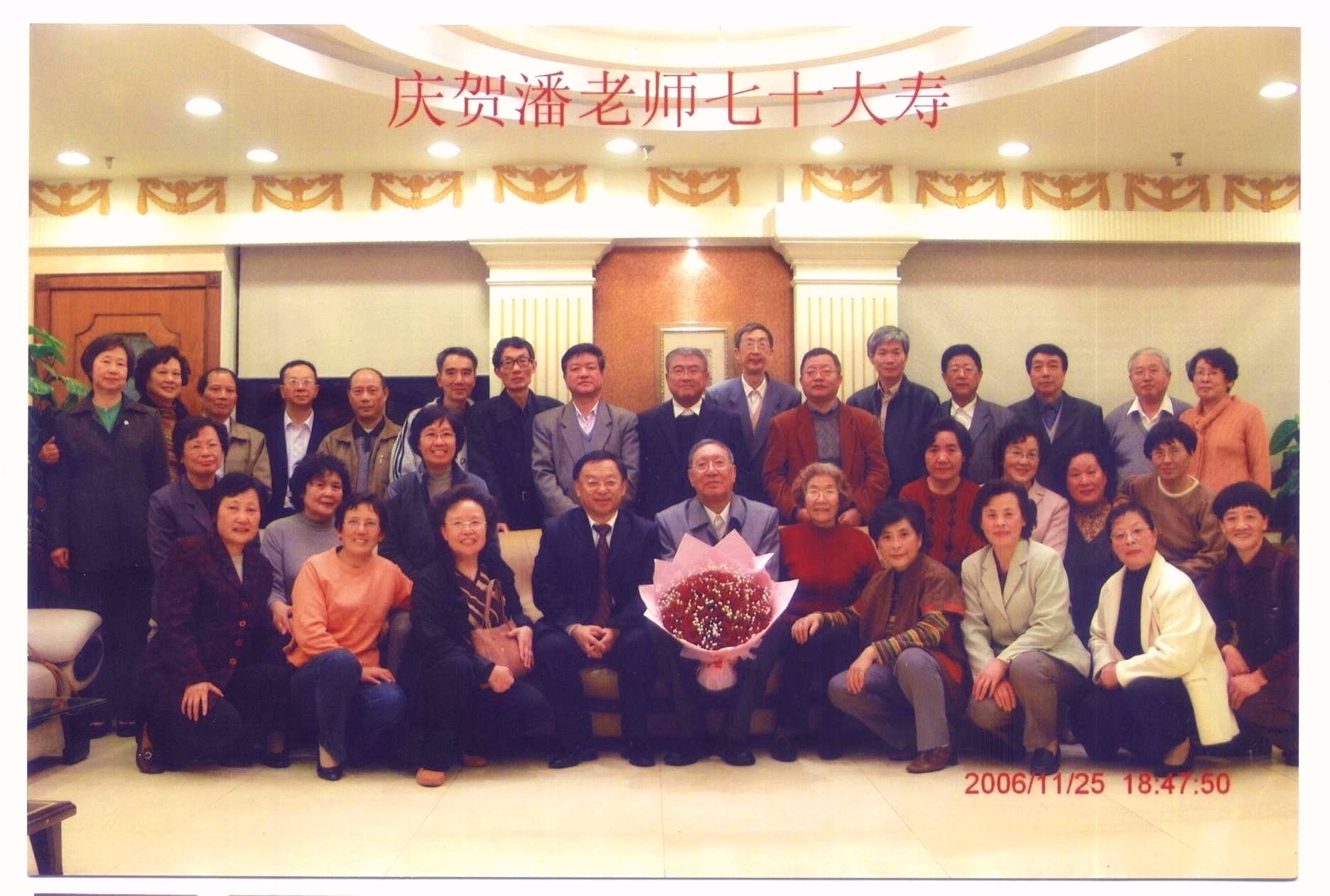 2006年64届中三丙班为潘老师(前左五)祝寿(我在后排右七)