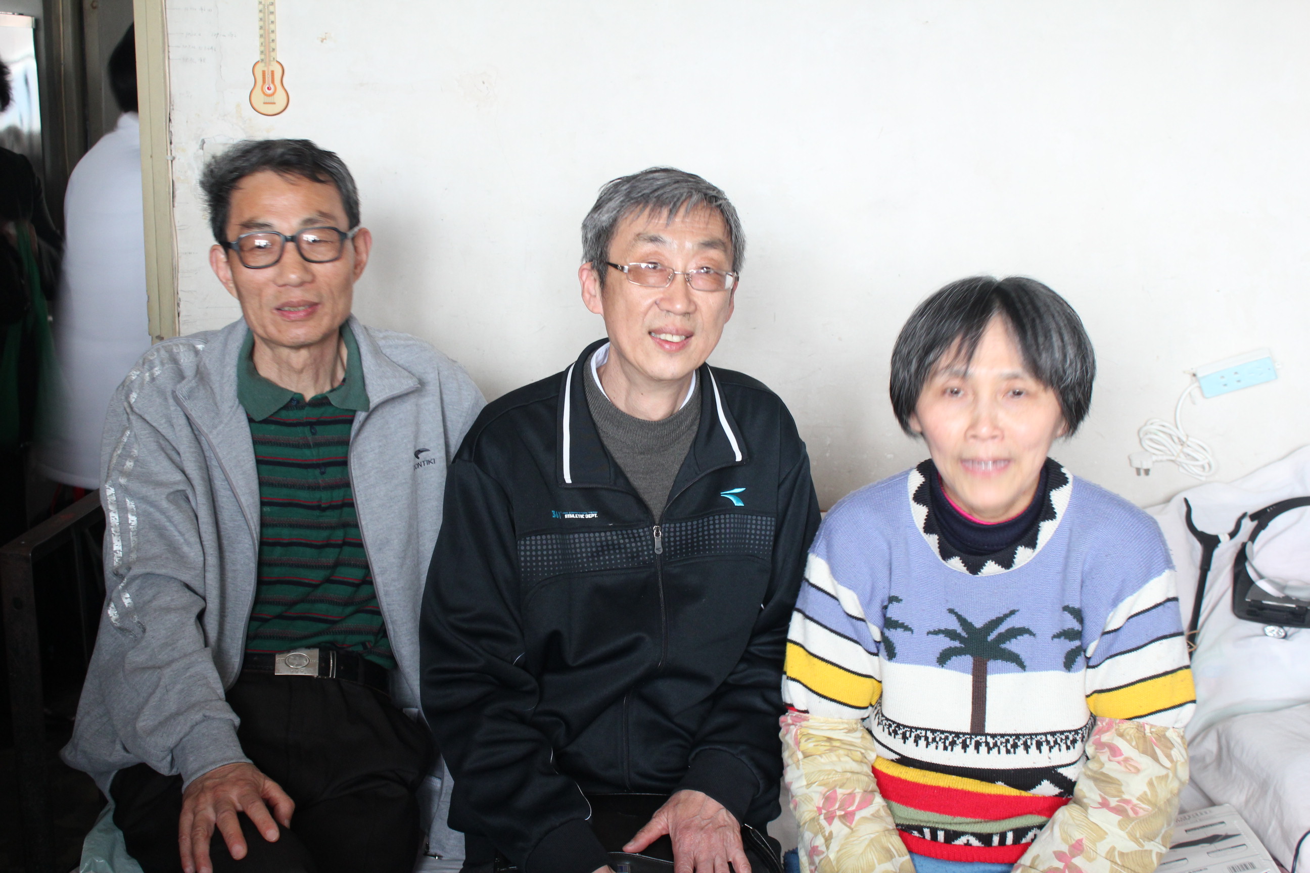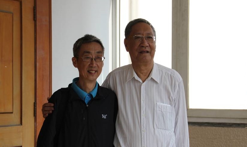 和陈祥根(左)一起去探望初、高中的同班同学苏长倪(右)