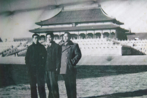 (左起) 1962年冬傅敏、王利曾與我在故宮太和殿前