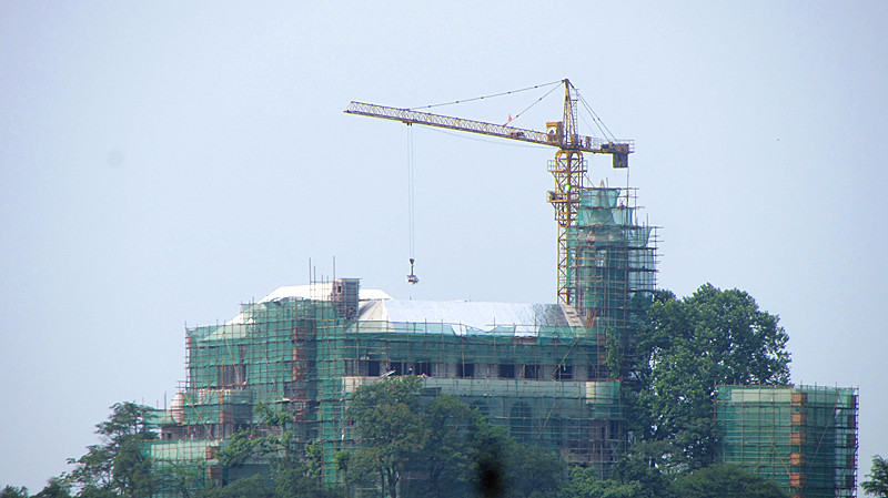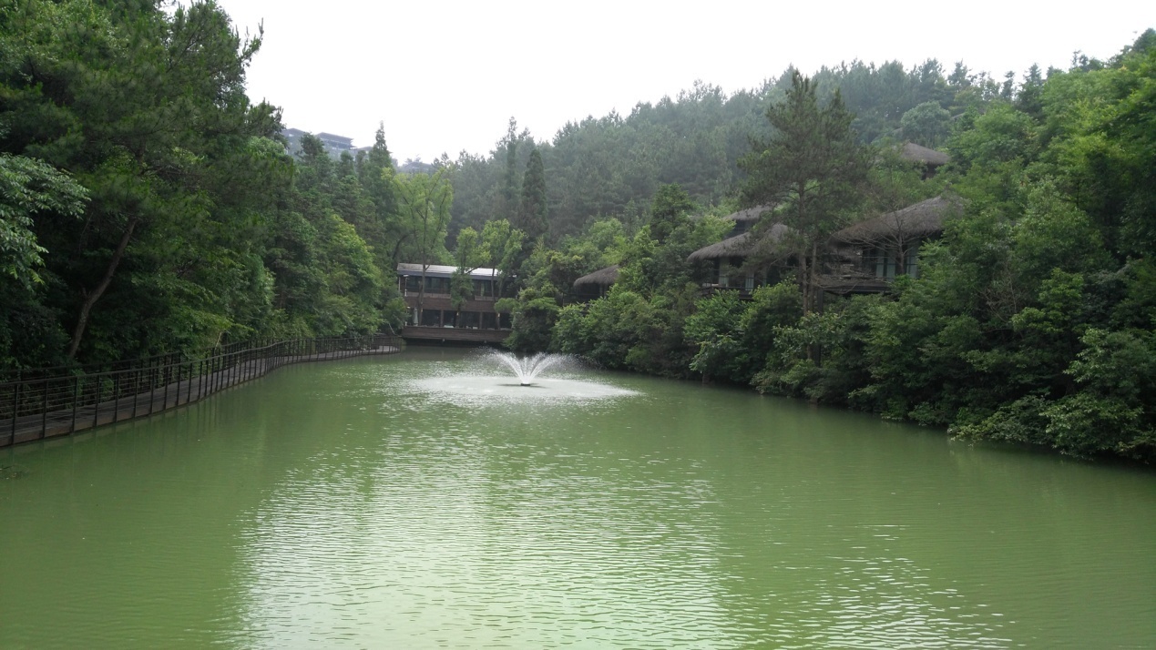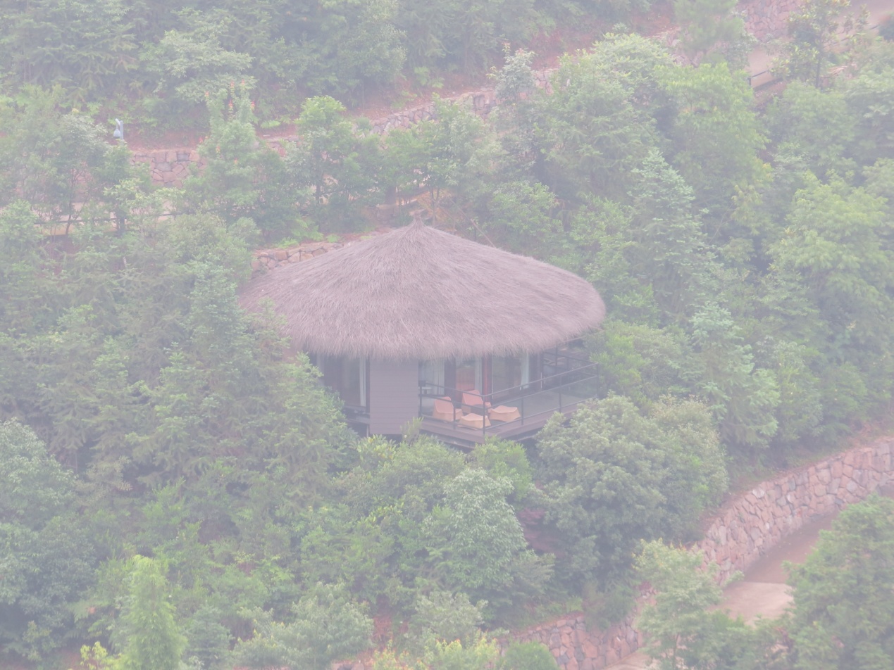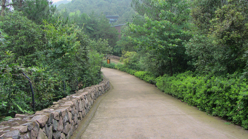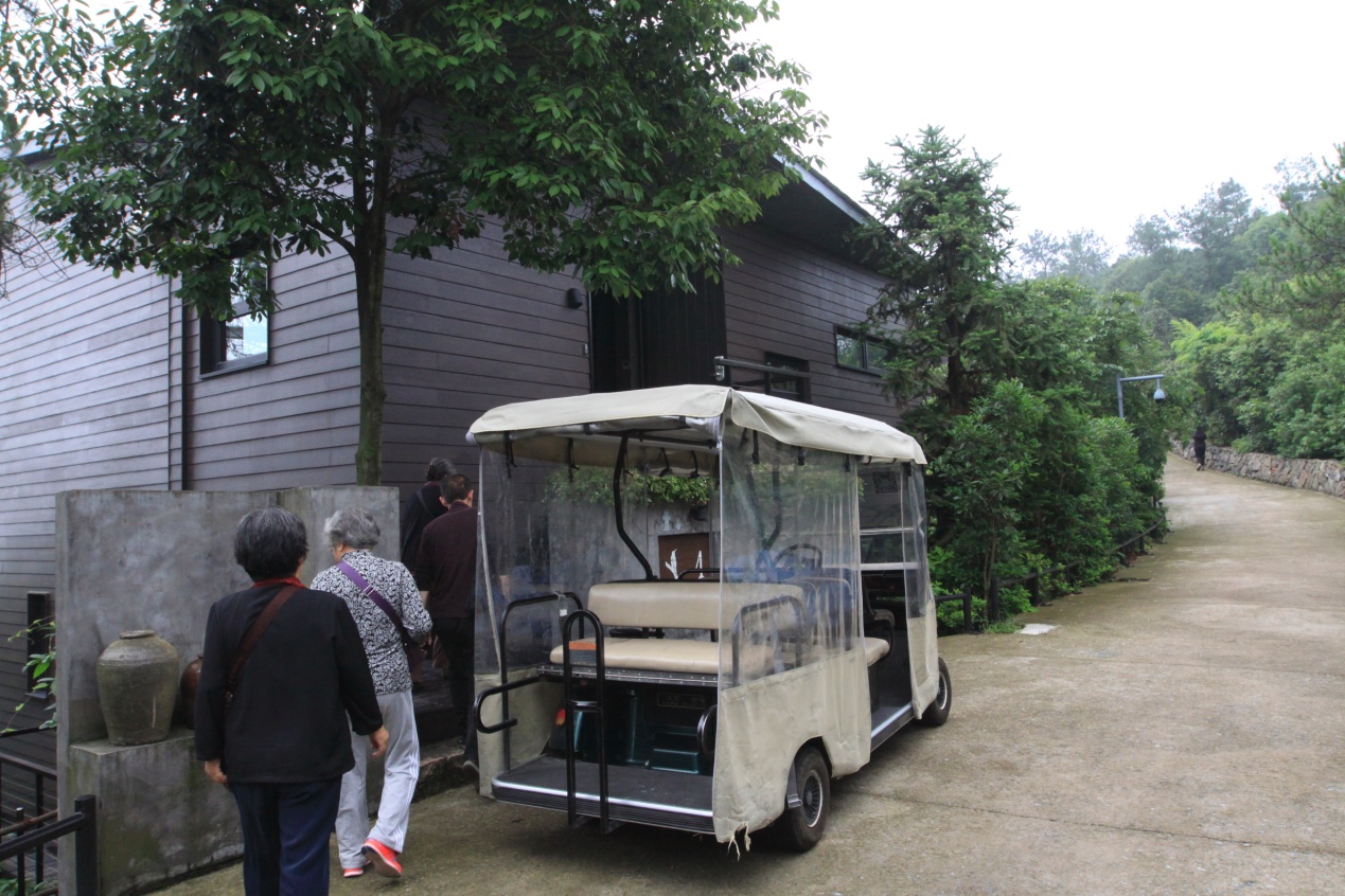 第三天(6月16日),寺院方安排我们去游览“裸心谷”。那是2011年10月已经建成并对外开放供游览和住宿的风景度假区。处于昨天我们在莫干山风景区望见远处的一座美丽的青翠葱郁的山峰里。山顶上正在施工建设“裸心堡”。