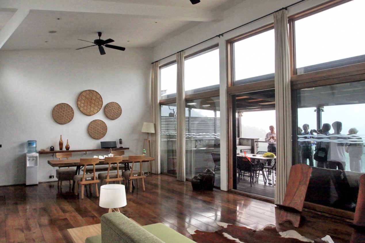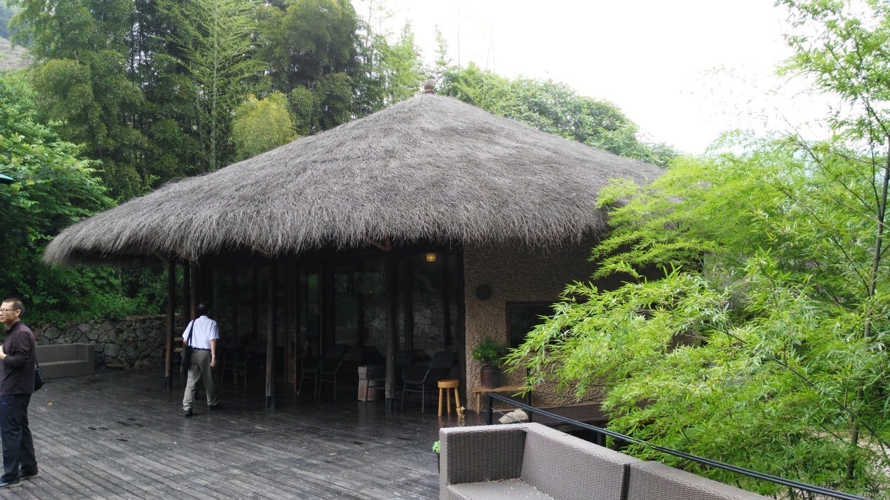裸心谷倡导的建设理念是绿色环保,将雨水回收,循环使用;山谷中的沉降池过滤“中水”;湖泊作为“中水”蓄水池;用当地的竹制茅草屋顶;利用当地回收的瓦片、老木桁架及柱子作建材;山青水秀,茅屋竹林……这一切都给我们留下了很深刻的印象。