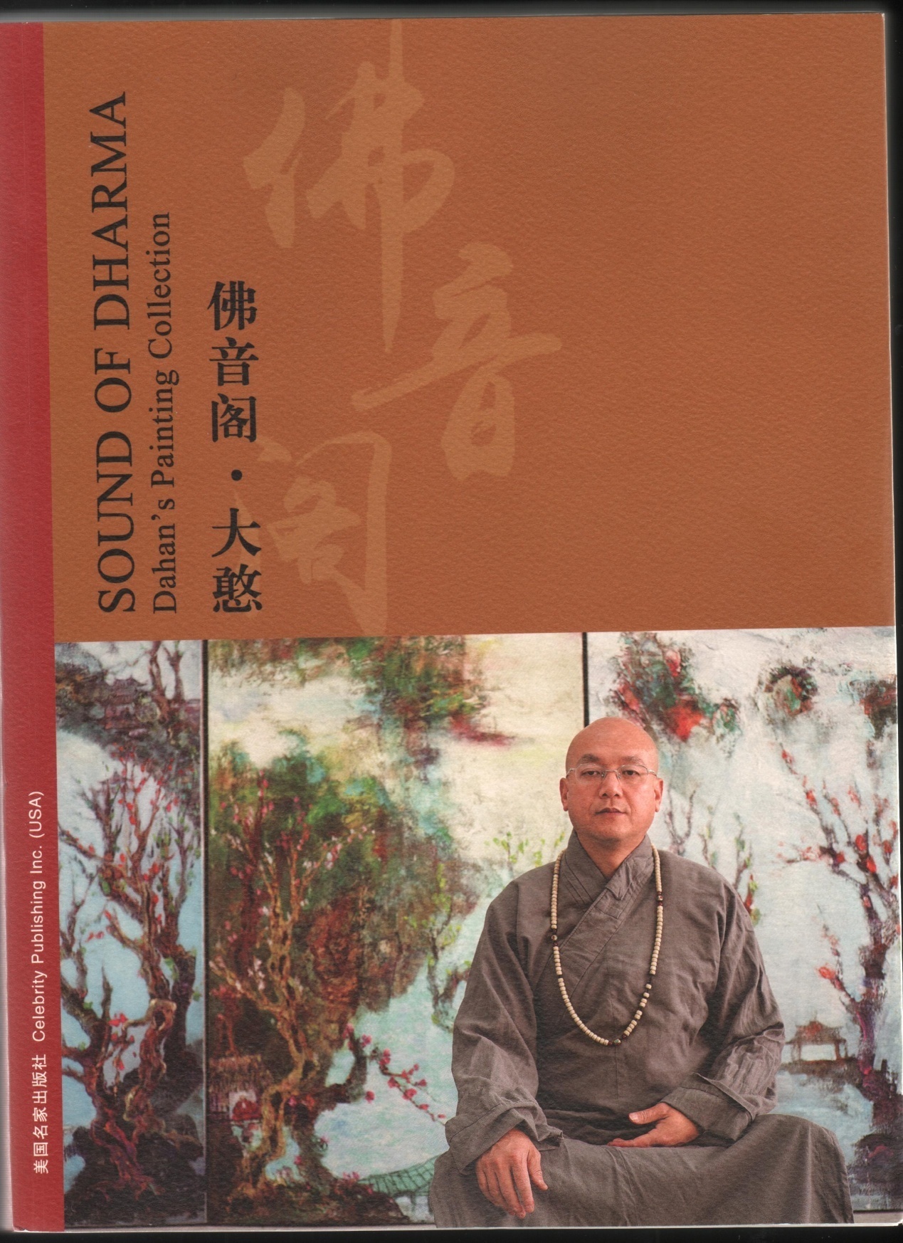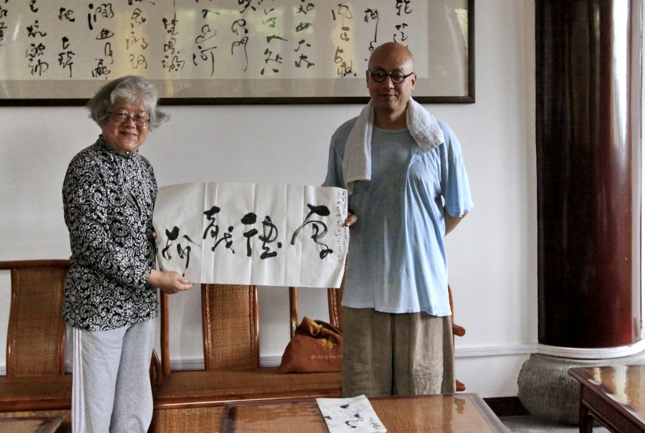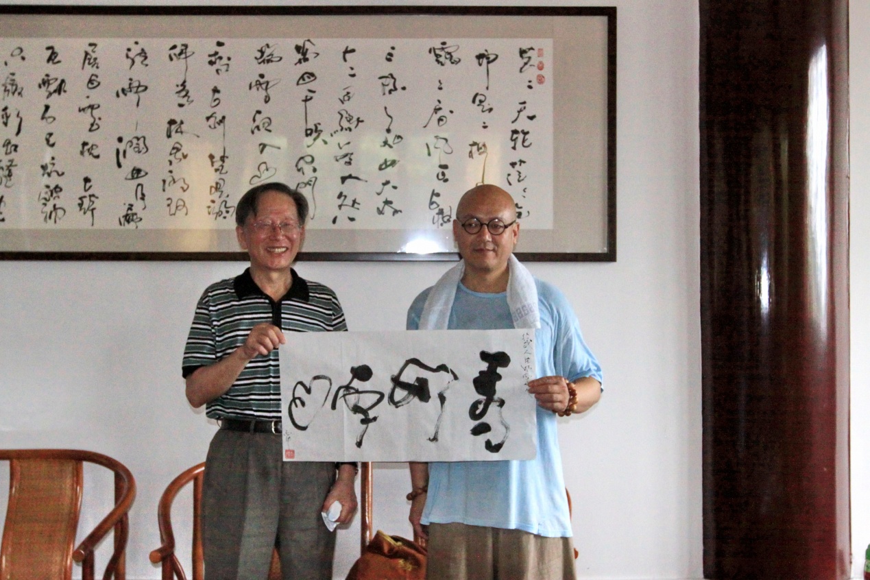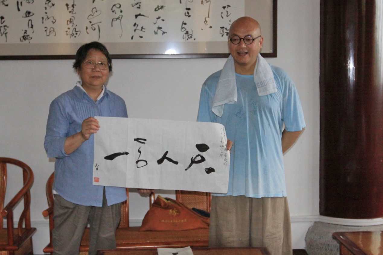 下午,回到了高峰禅寺。大憨住持在护法殿会议室里向我们赠送了他的画册,每人一本。以及他亲笔书写的书法作品,每人一幅。