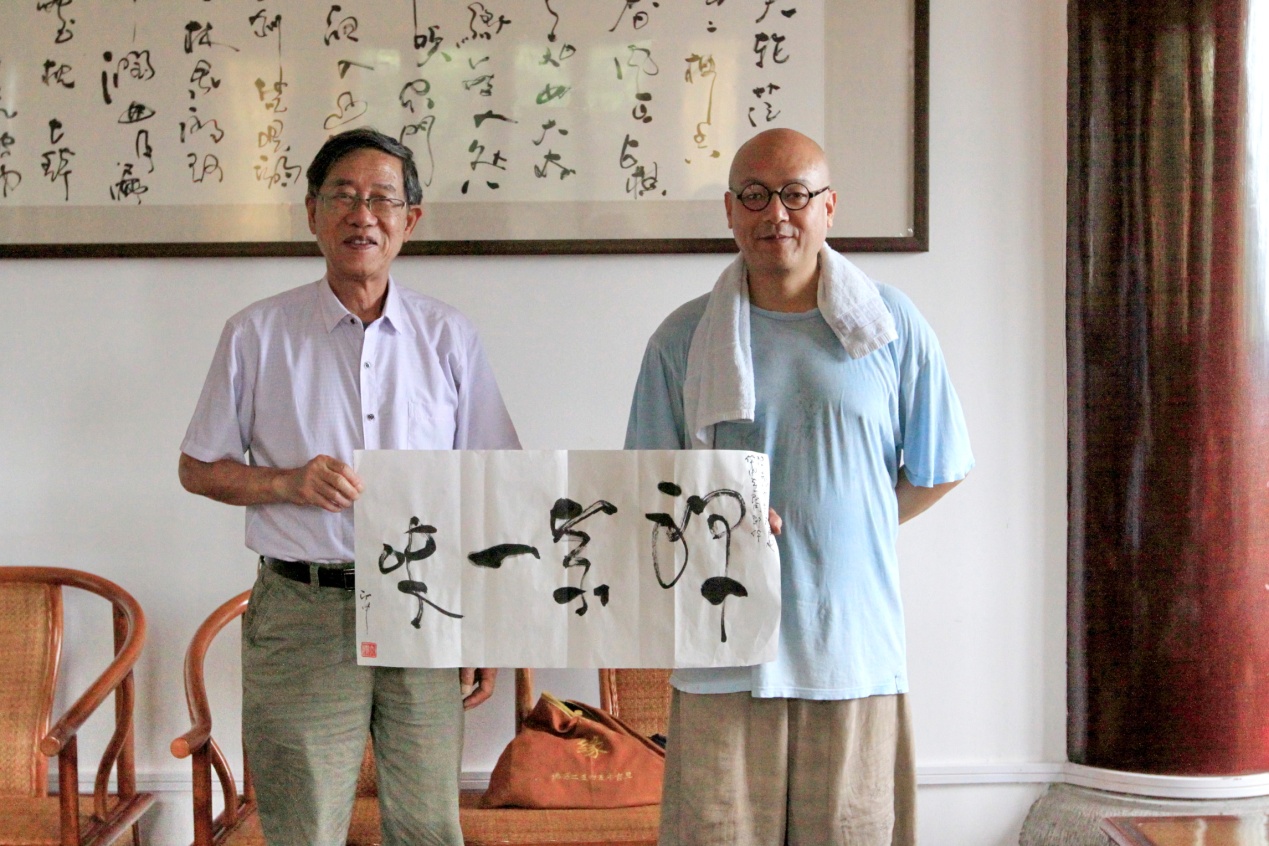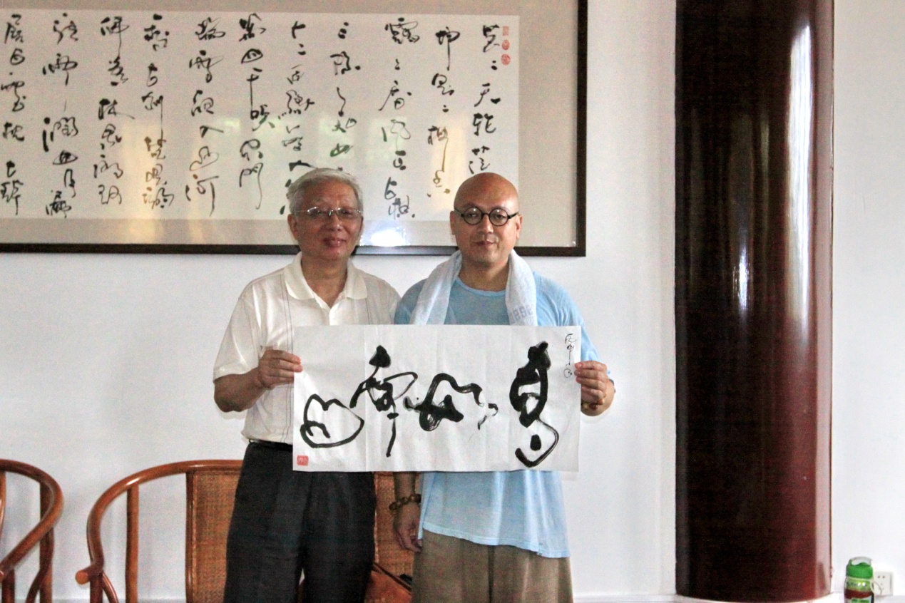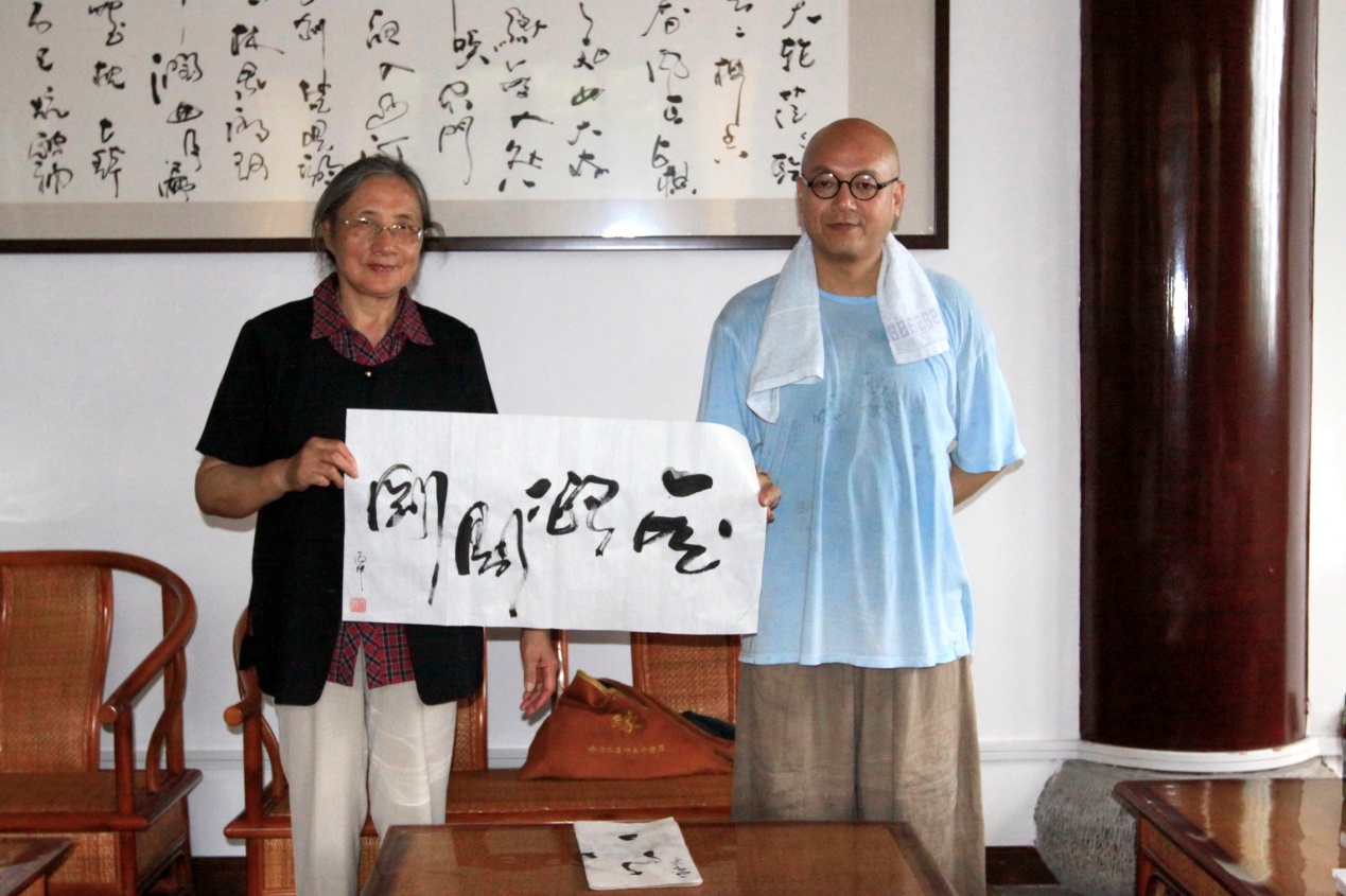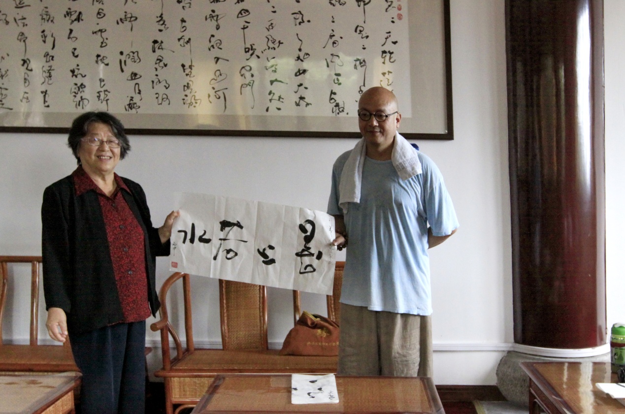 下午,回到了高峰禅寺。大憨住持在护法殿会议室里向我们赠送了他的画册,每人一本。以及他亲笔书写的书法作品,每人一幅。