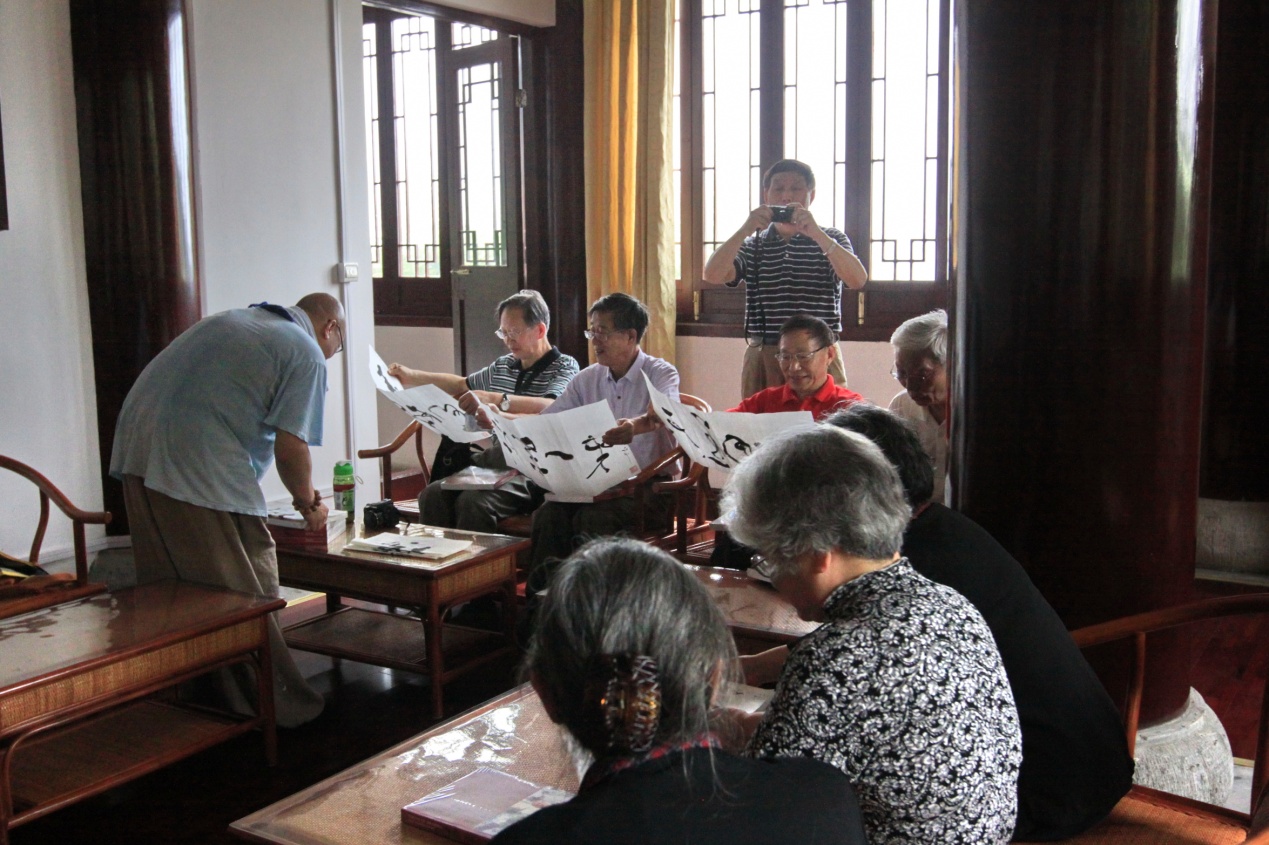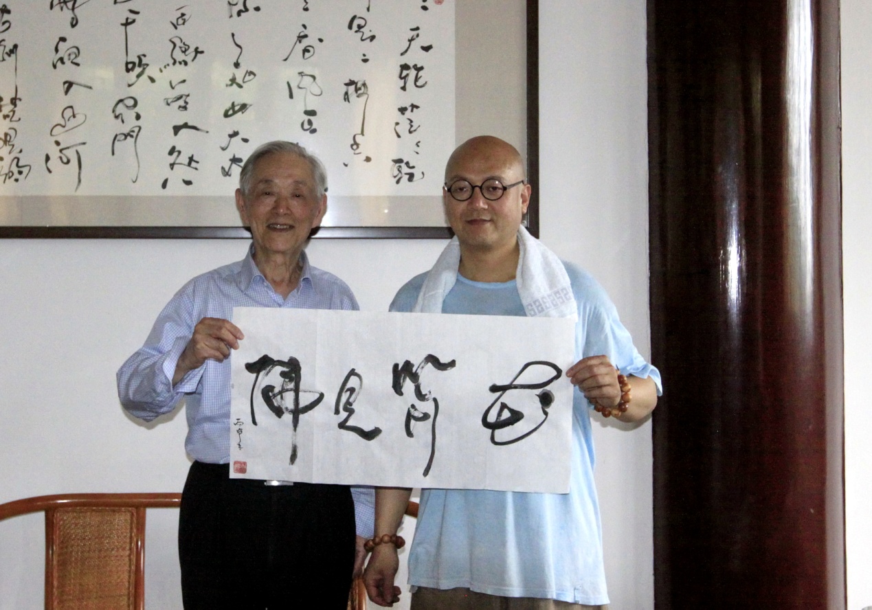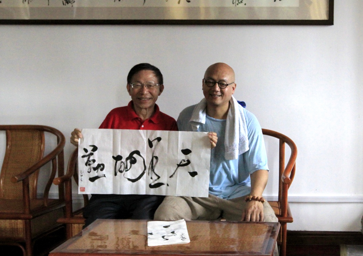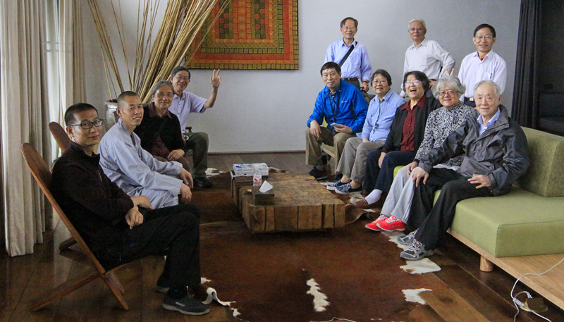 下午,回到了高峰禅寺。大憨住持在护法殿会议室里向我们赠送了他的画册,每人一本。以及他亲笔书写的书法作品,每人一幅。