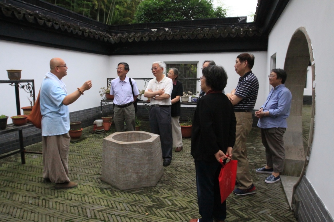 随后,他陪同大家参观寺院殿堂。一一介绍殿堂中供奉的佛像,讲述着佛经上的故事。也讲了高峰禅寺特有的济公井,神奇地由混变清的故事。