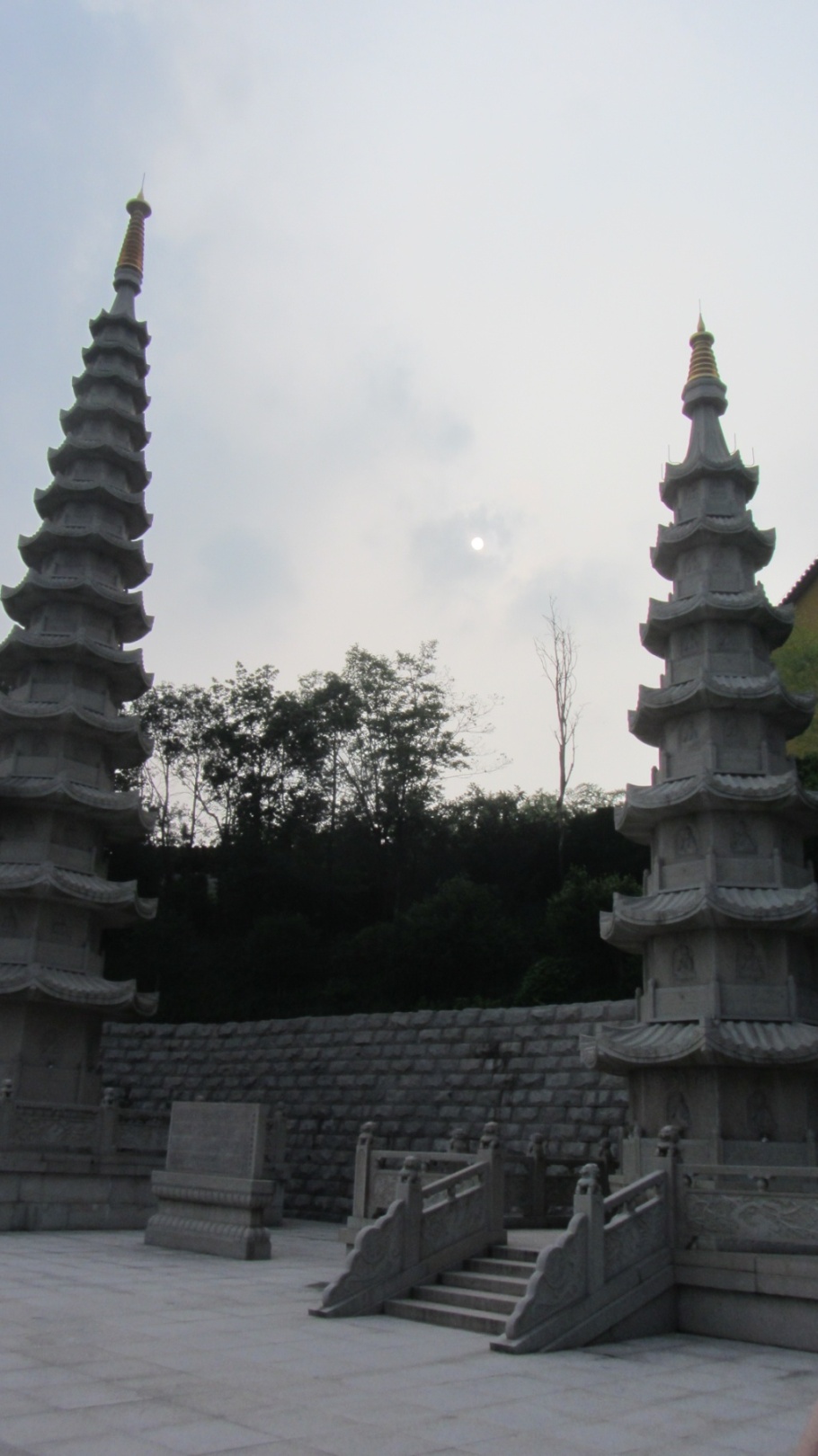 双塔一高一低,于2014年落成。高的为13层,名为释迦塔,里面供奉着佛祖释迦摩尼的佛牙舍利。低的为7层,名曰祖师塔,里面供奉着心中心法第三代传人元音宗师的舍利子。