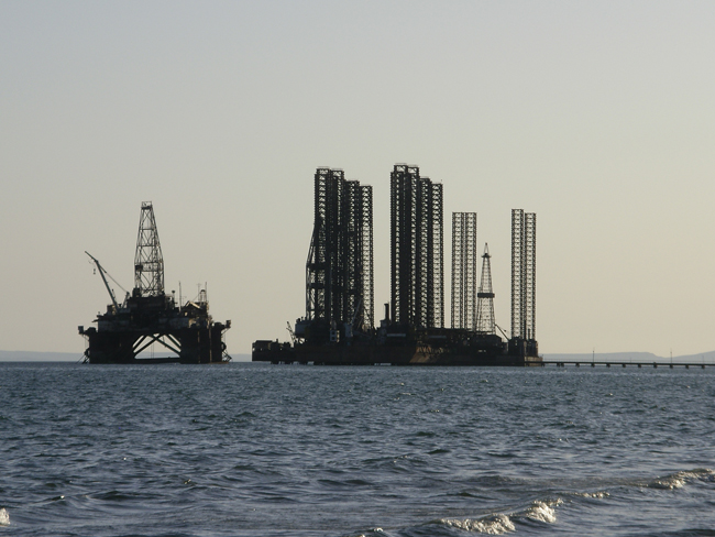 耸立在里海之中的巴库油井