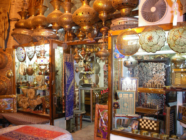皇家广场的两侧与二层拱廊相连,进入拱廊,也像是进入了艺术长廊。长廊简直是个艺术博物馆,各种手工工艺品,琳琅满目,五彩缤纷;制盘的铜匠和波斯地毯的印花匠都在现场操作表演,欢迎各国游客观摩,照相和购物。